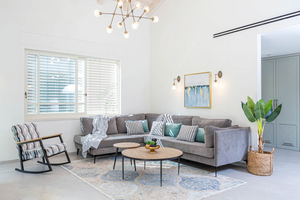 זוג צעיר מקיבוץ בצפון שחלם על בית חם ומעוצב. הם רכשו ספה נוחה ומפנקת, רהיטים בשילוב עץ וברזל שייעניקו אוירה ייחודית לבית. מרגישים את הנגיעה האישית בפרטים בבית. בריהוט, גופי התאורה והטקסטיל.