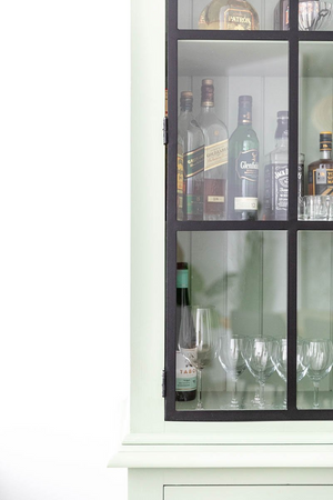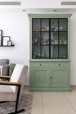 בית בסגנון נורדי, עם שילוב מטריף של ויטרינה צרפתית עם טוויסט עיצובי, ויטרינה בצבע פיסטוק