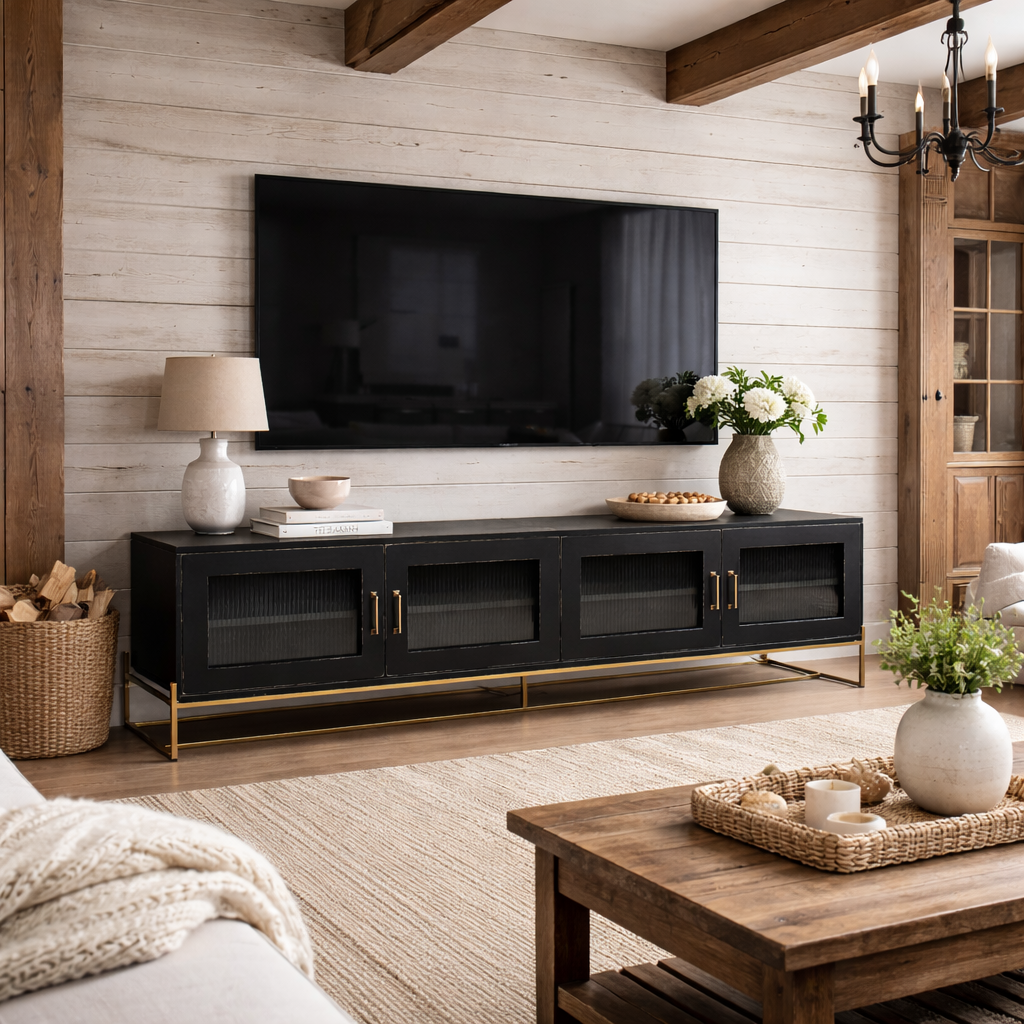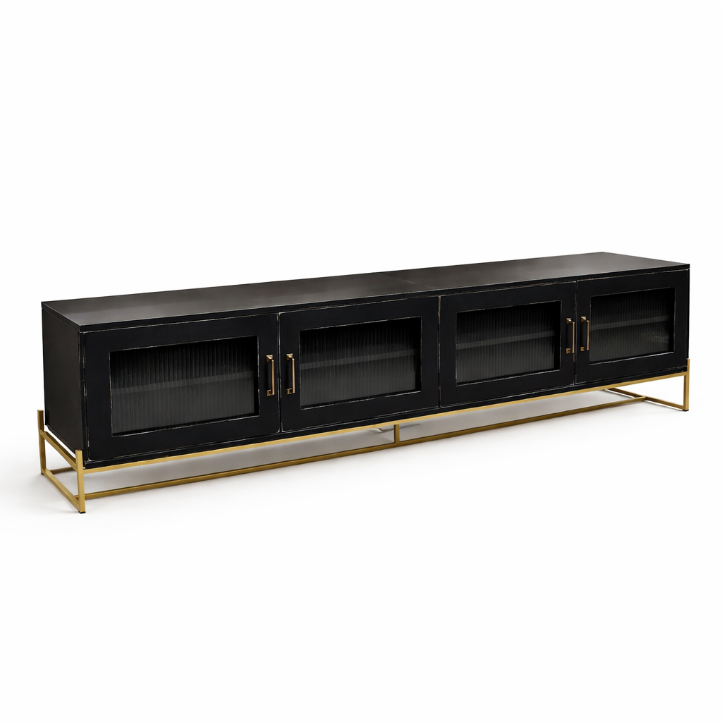 מזנון מרשים ביופיו, פרקטי עם מדפים לאחסון ורגלים בצבע זהב גולד