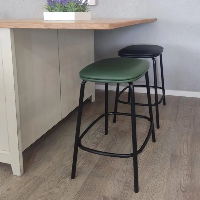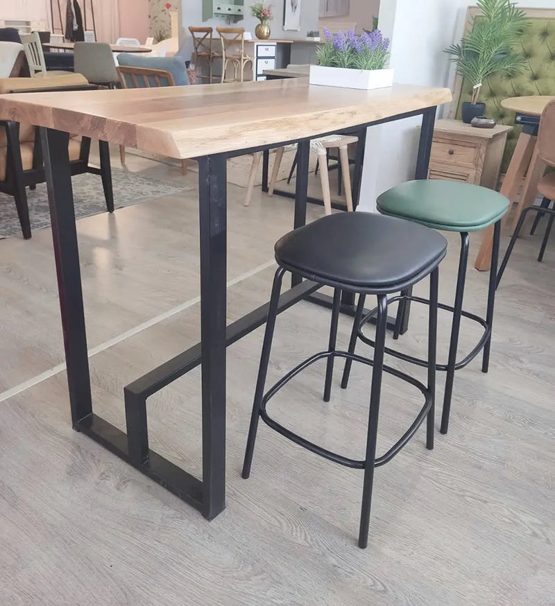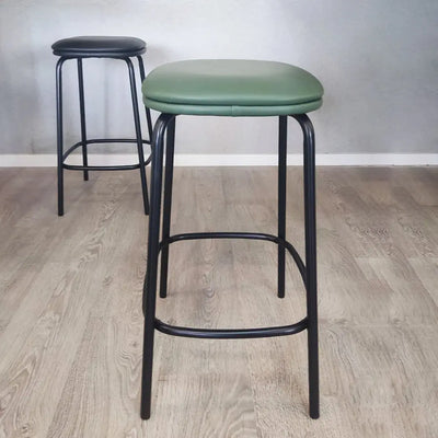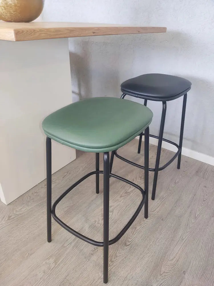 כסא בר מרופד בבד דמוי עור עם רגלי ברזל דקות ומעוצבות