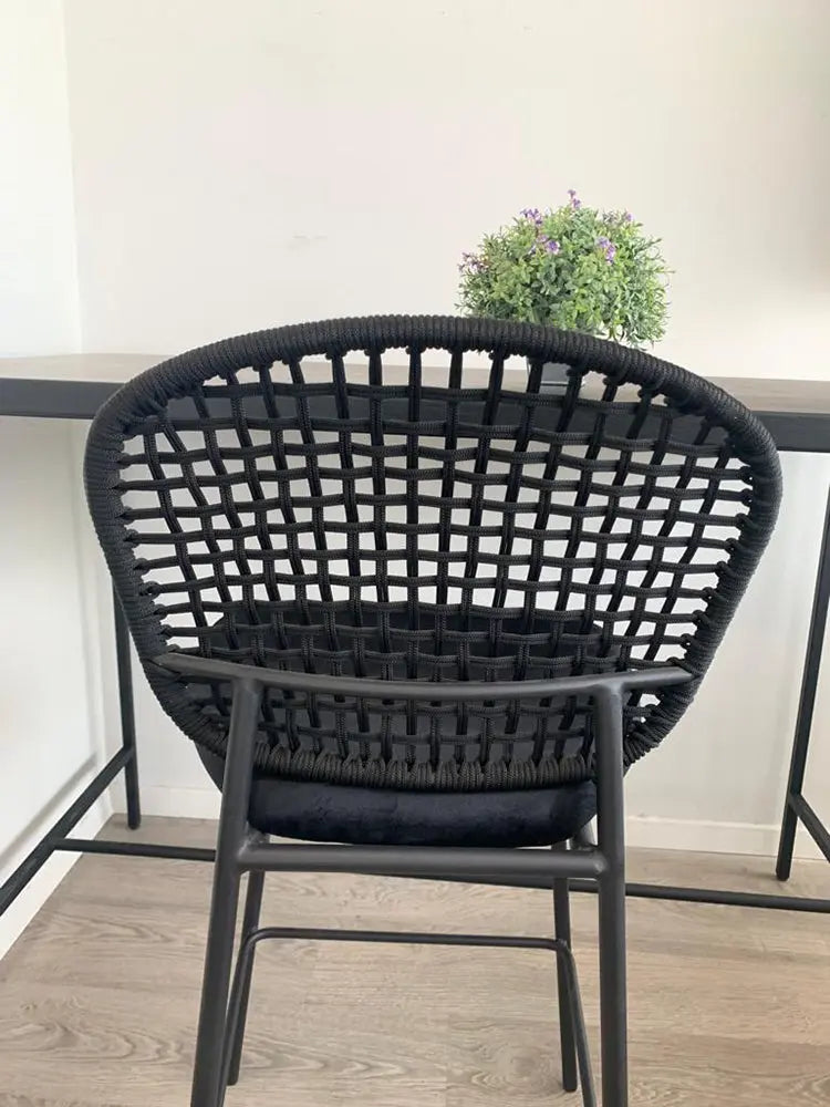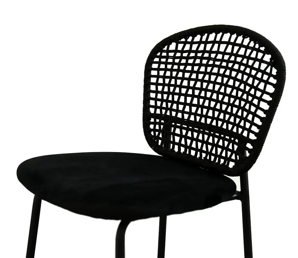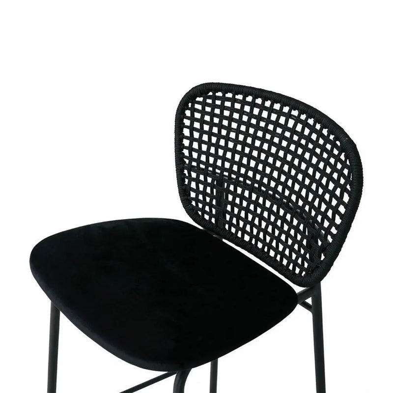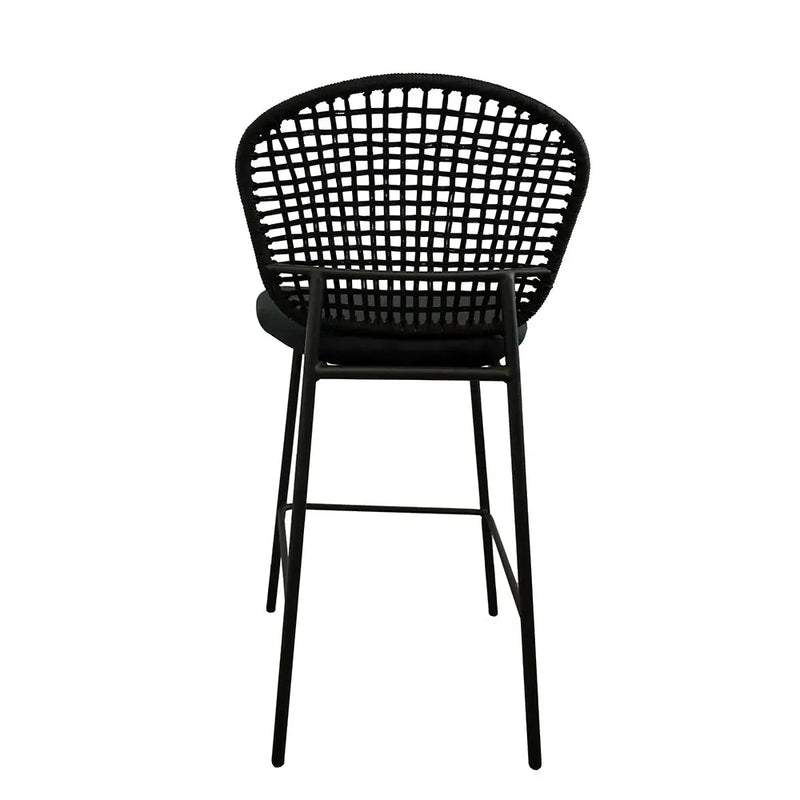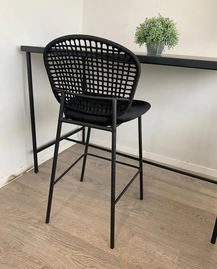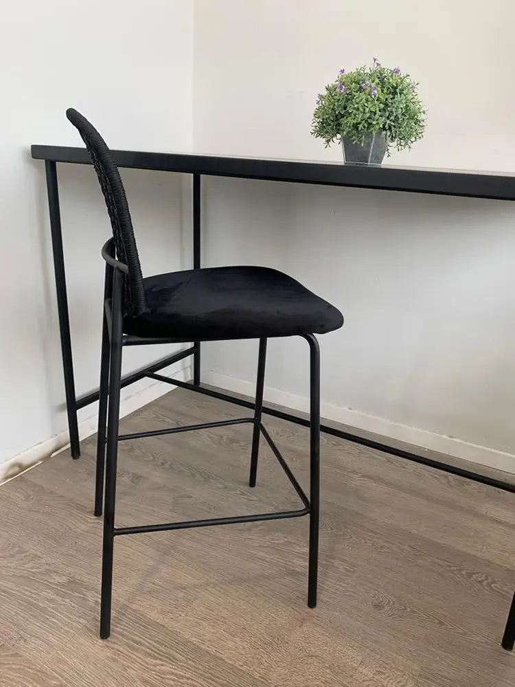 כסא בר מרופד, עשוי מסגרת שחורה יציבה.