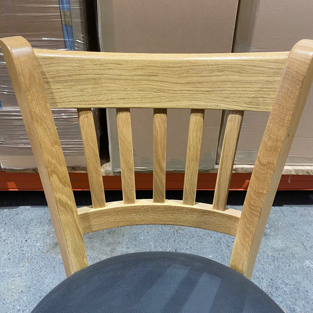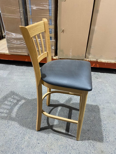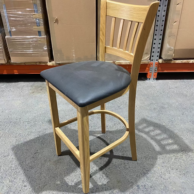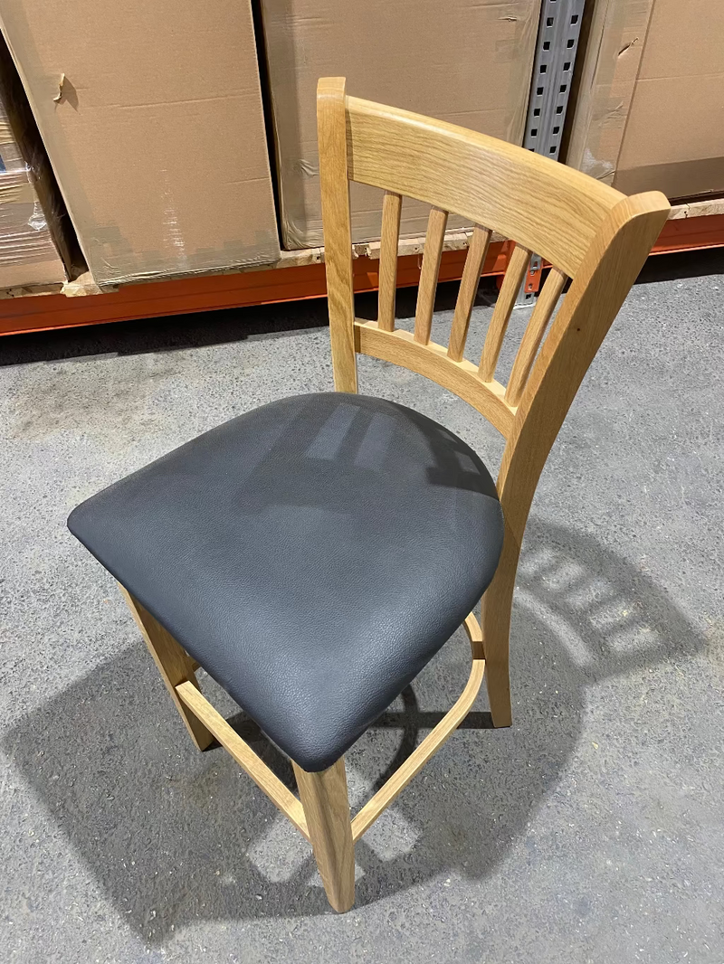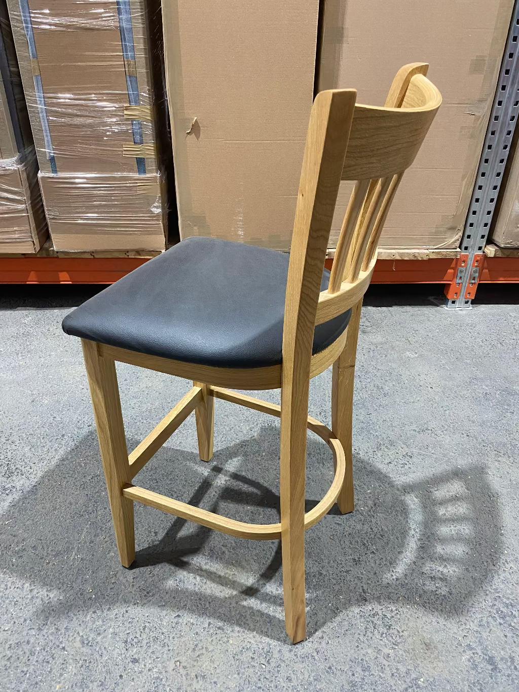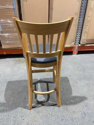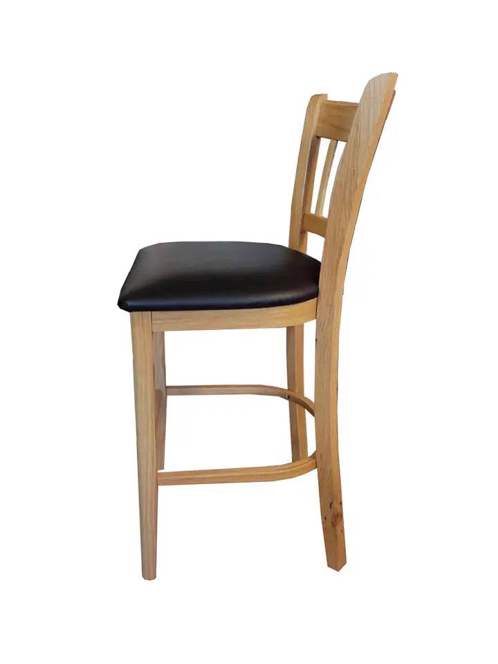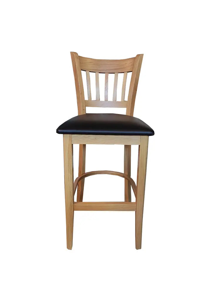 כסא בר מעץ אלון מלא בגוון טבעי בעיצוב כפרי.