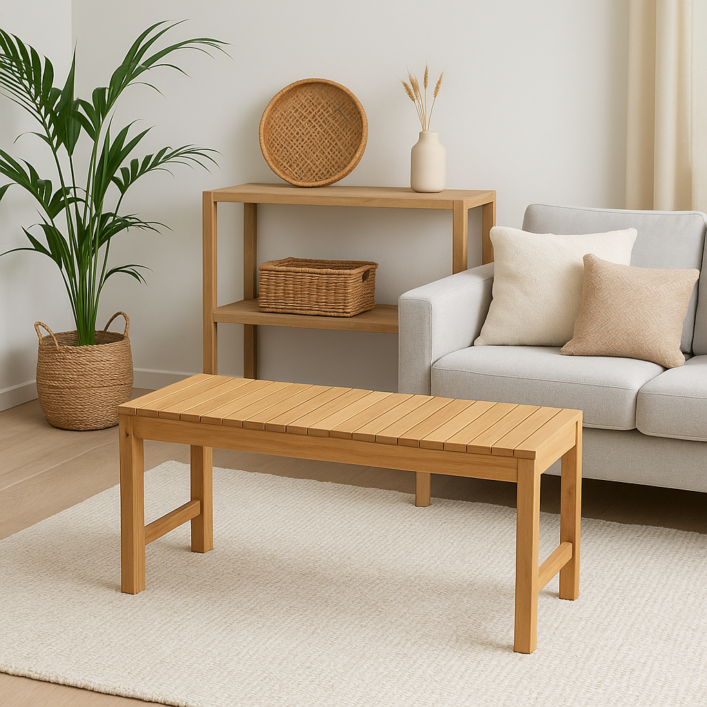 ספסל מעץ טיק מלא בגוון טבעי מאינדונזיה,