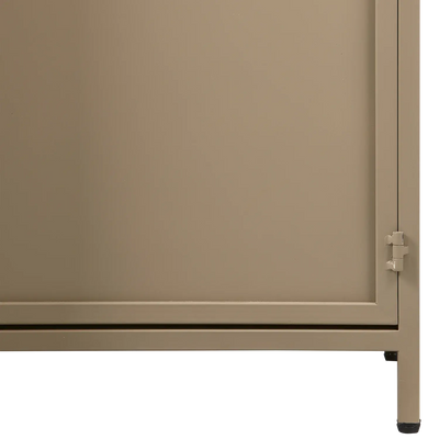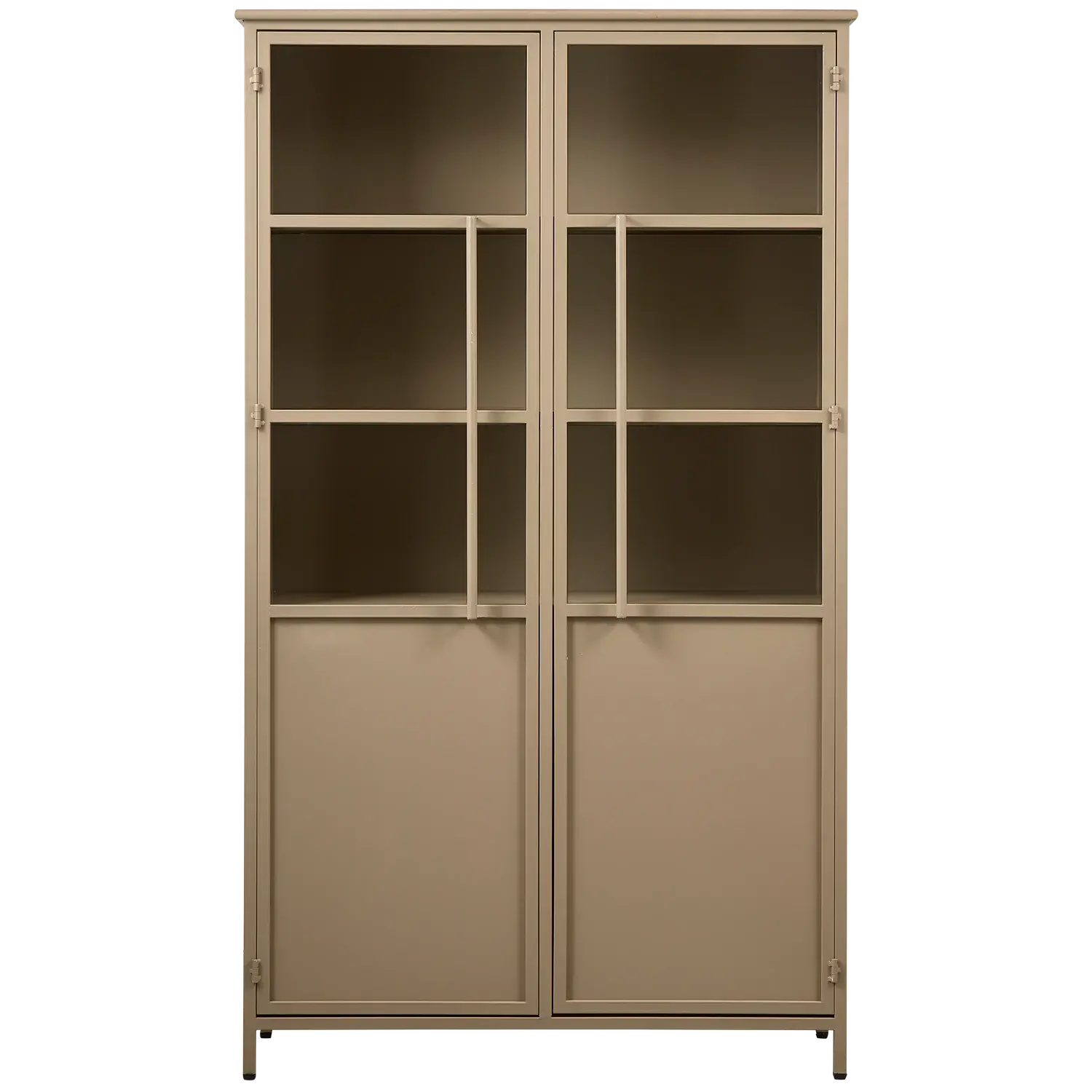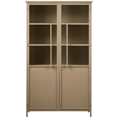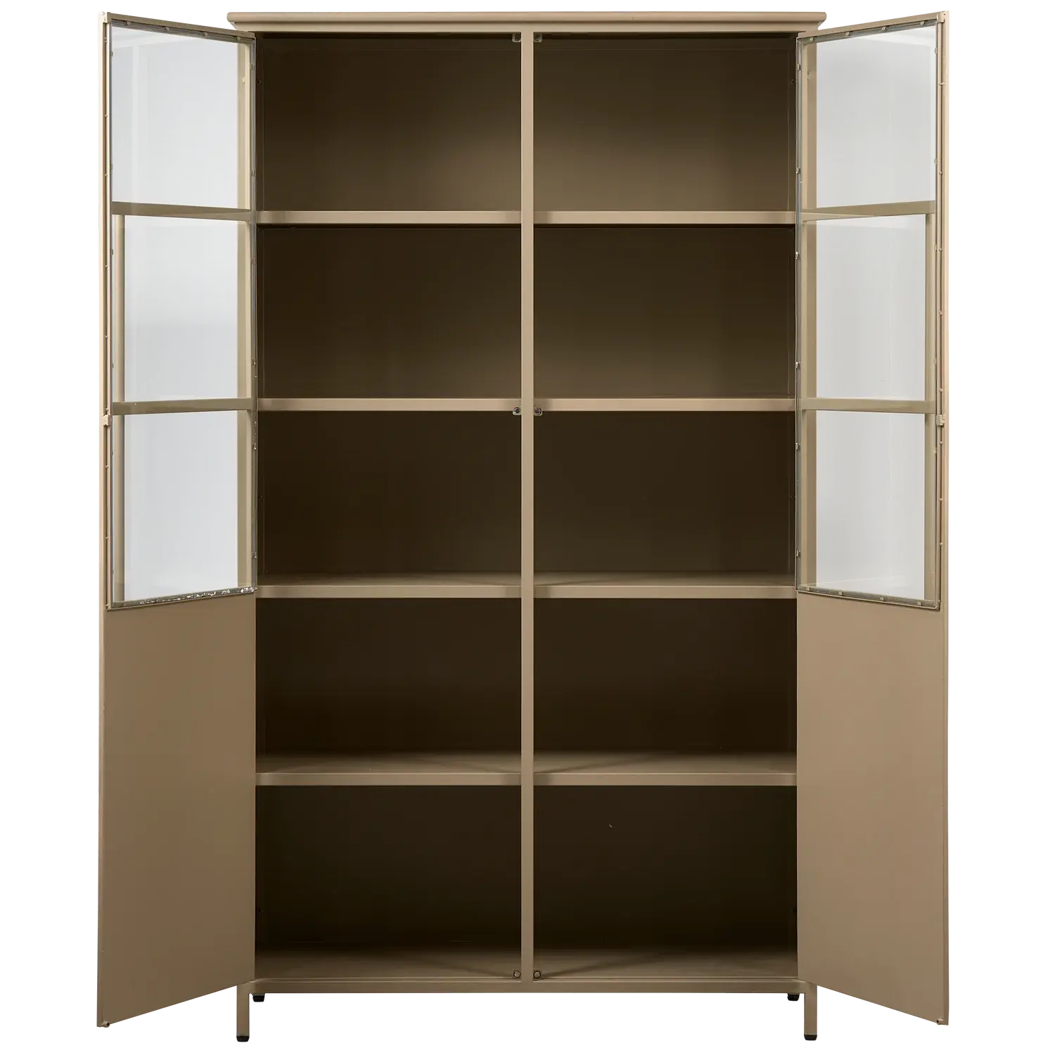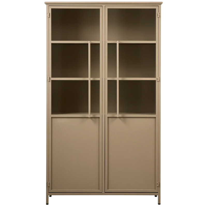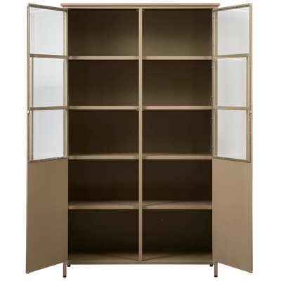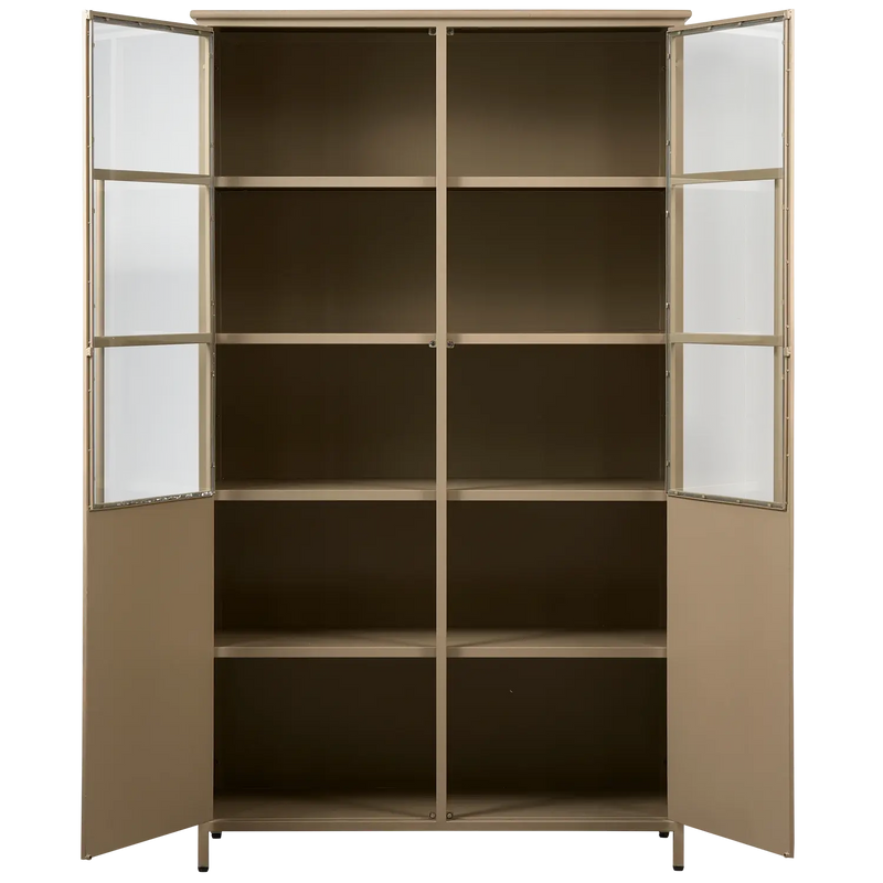 ארון ויטרינה מתכת בציפוי מט עוצמתי ועכשווי - ברזל בצבע צבאי במראה מט - מצויד בארבעה מדפים