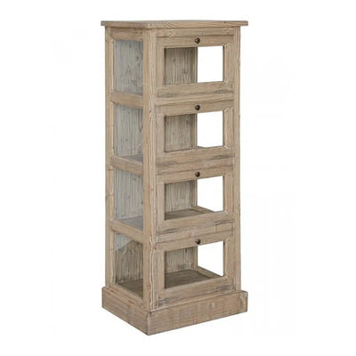 ארונית מדפים מעץ מלא בשילוב קלפות זכוכית.