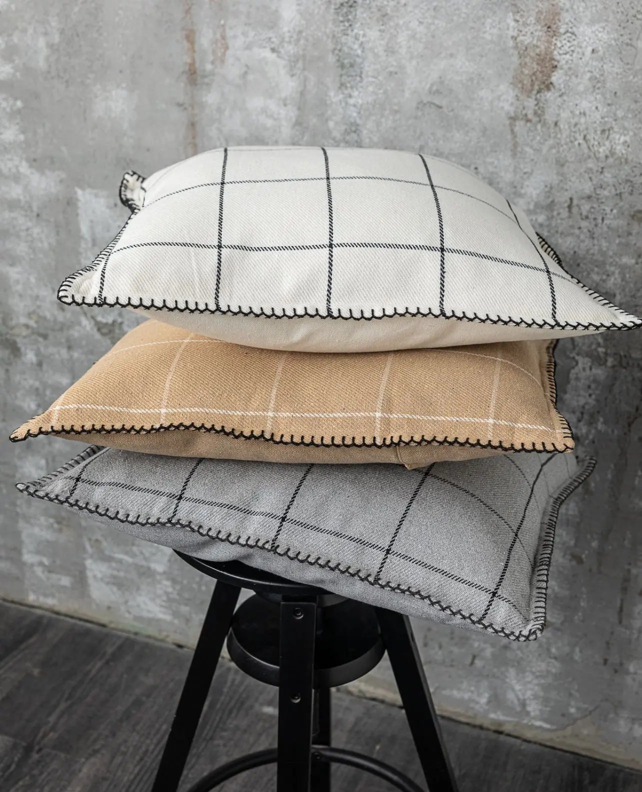 כרית בעלת מרקם נעים, ,משבצות עם תיפורים לכל צדדי הכרית