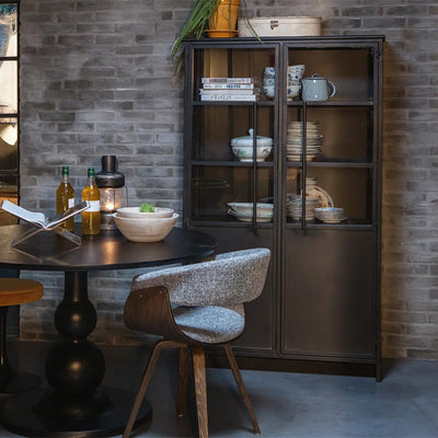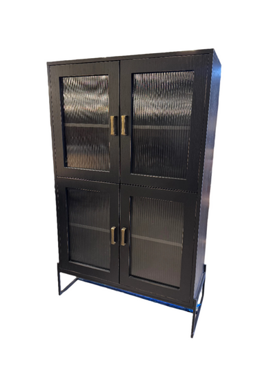 וטרינה ייחודית עשויה ברזל בצבע שחור, מעוצבת בסגנון תעשייתי.