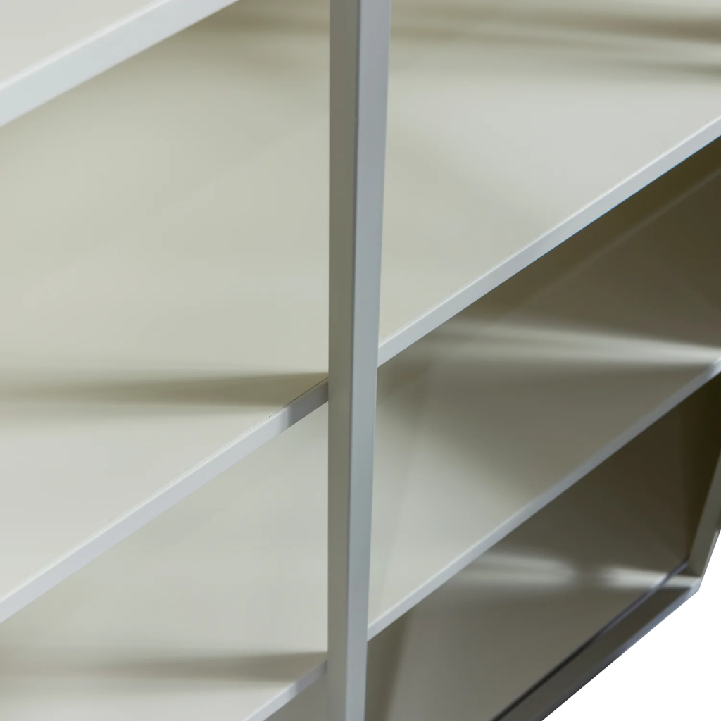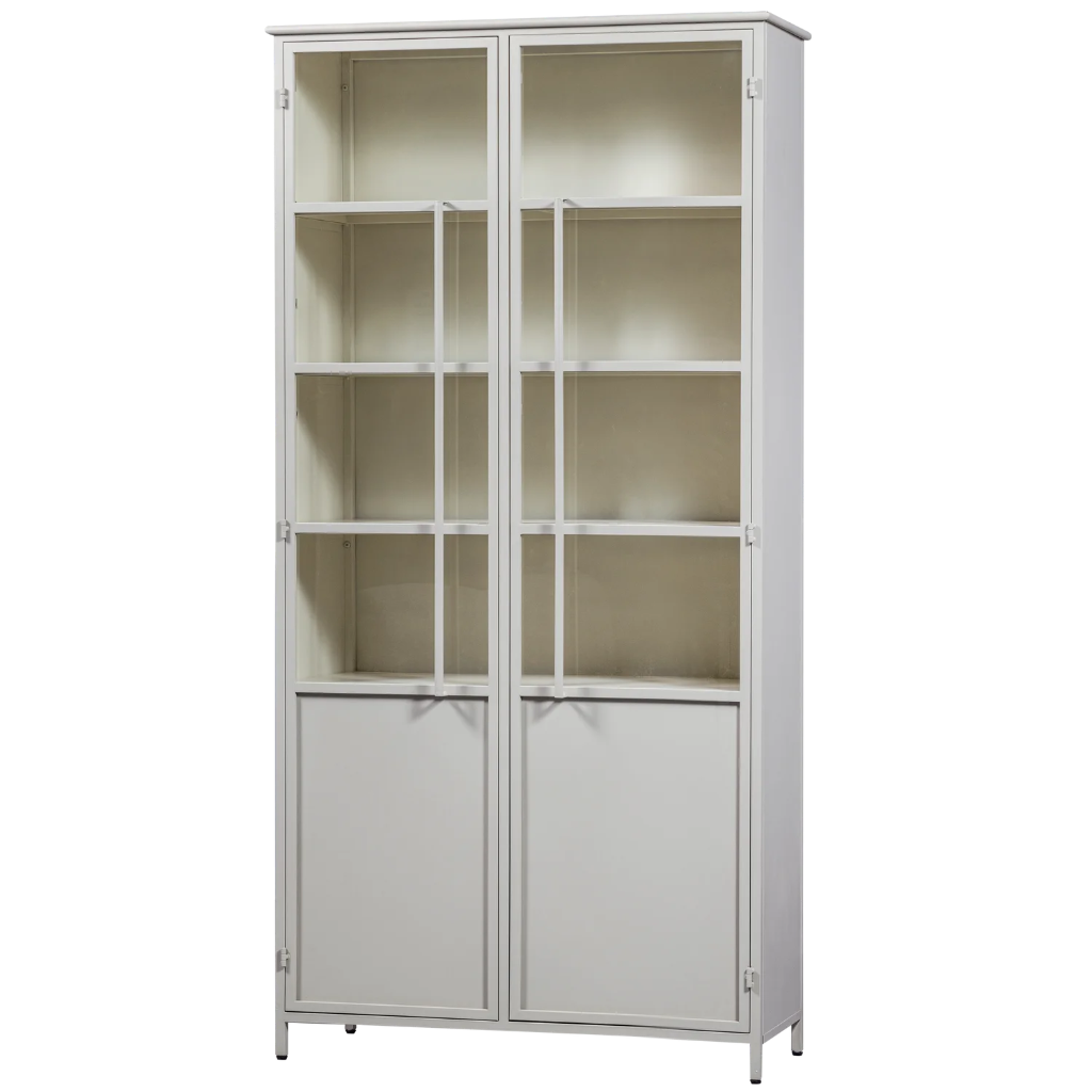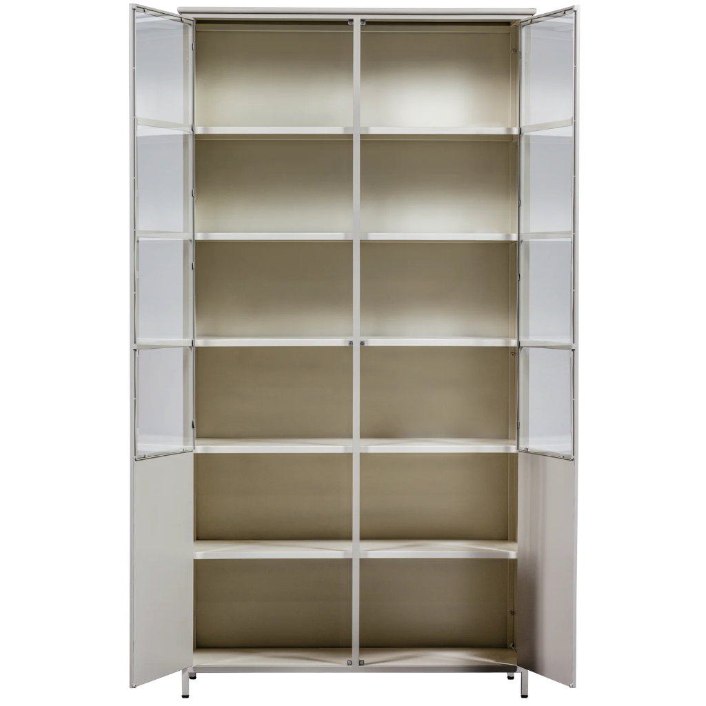 ויטרינה עשויה מתכת עם ציפוי מט אופנתי. המדפים עשויים גם הם ממתכת ומציעים מקום תצוגה נעים לאביזרי הבית האהובים עליכם. צבע חול מט .