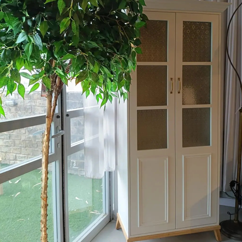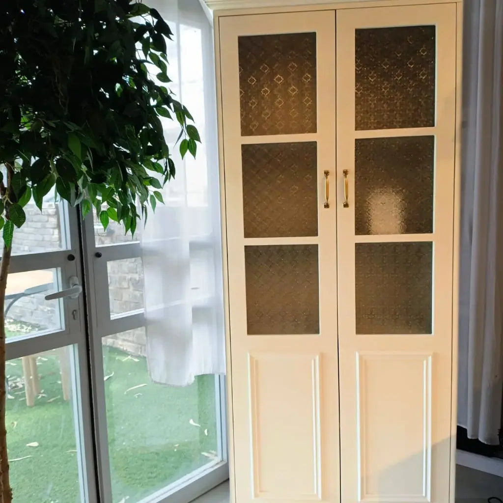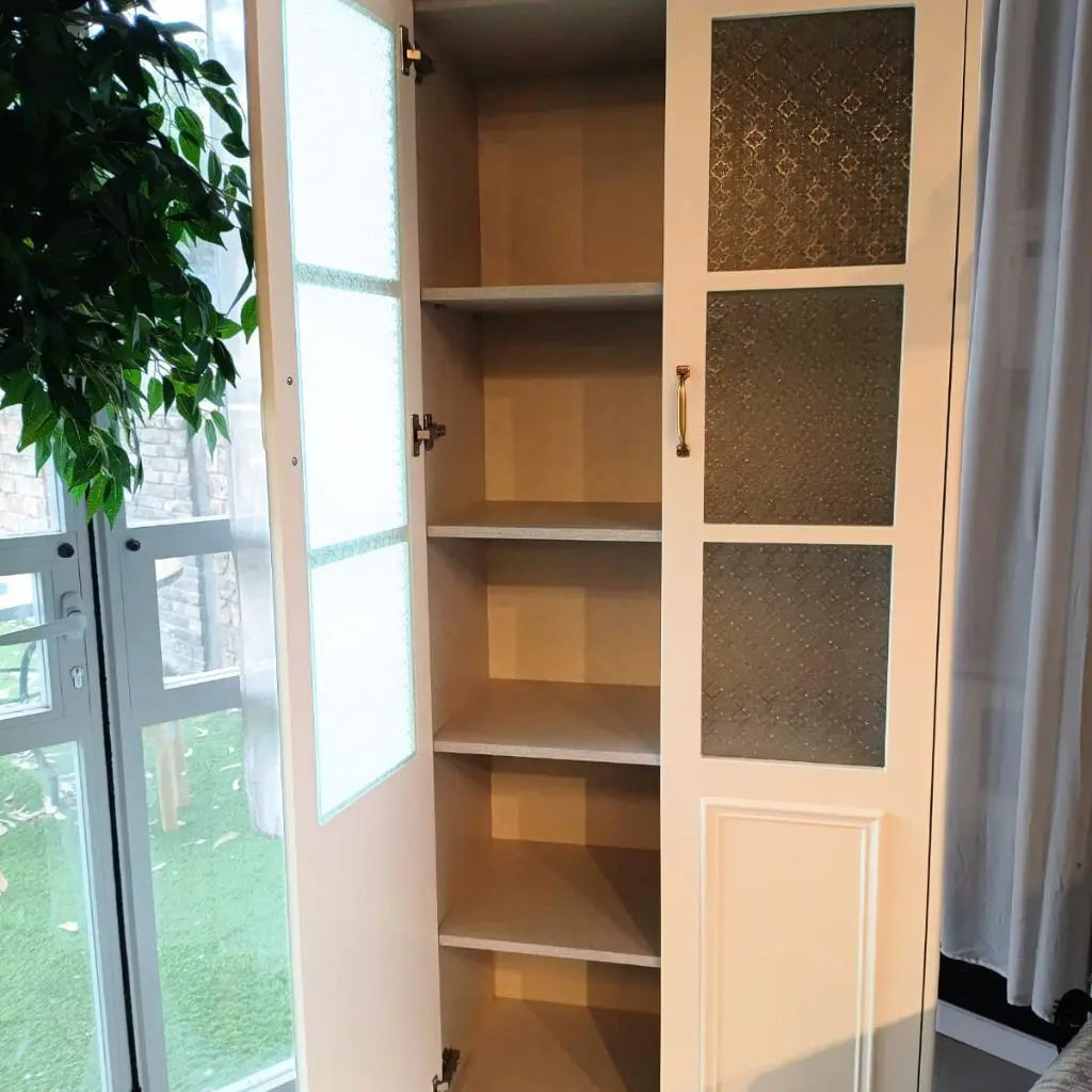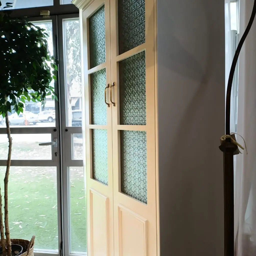 ויטרינה בסגנון כפרי. לוויטרינה 2 דלתות עם זכוכית סבתא, חלק תחתון של הדלת ללא זכוכית