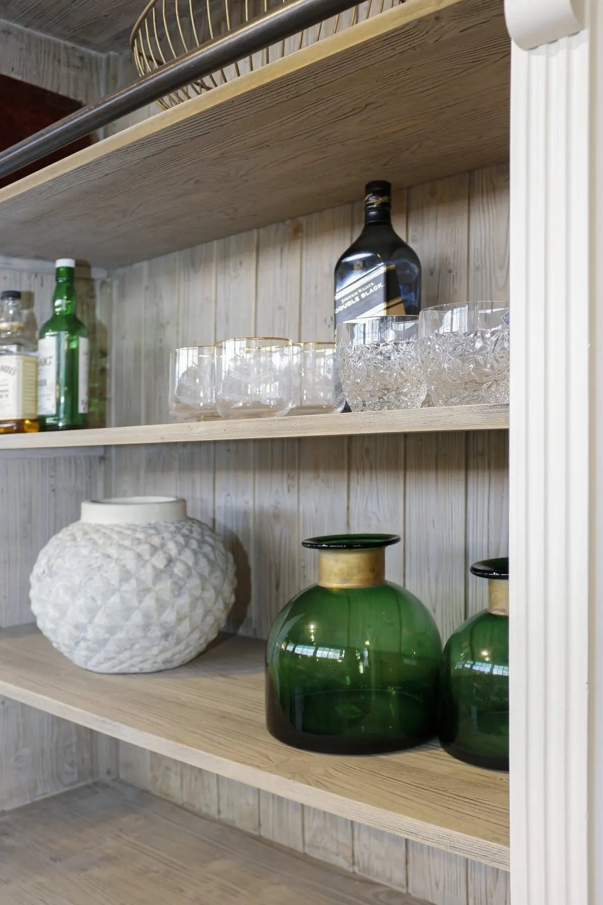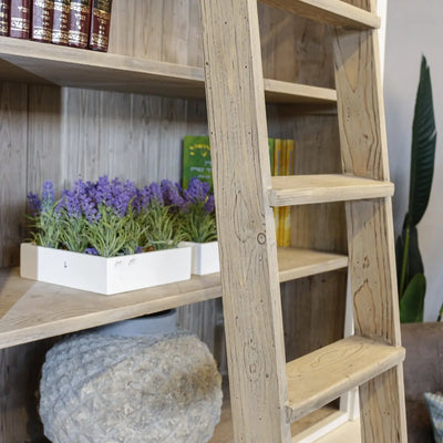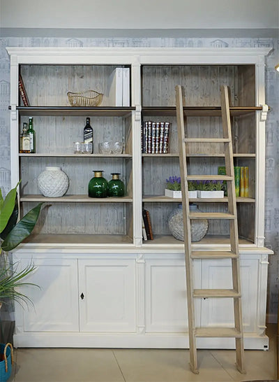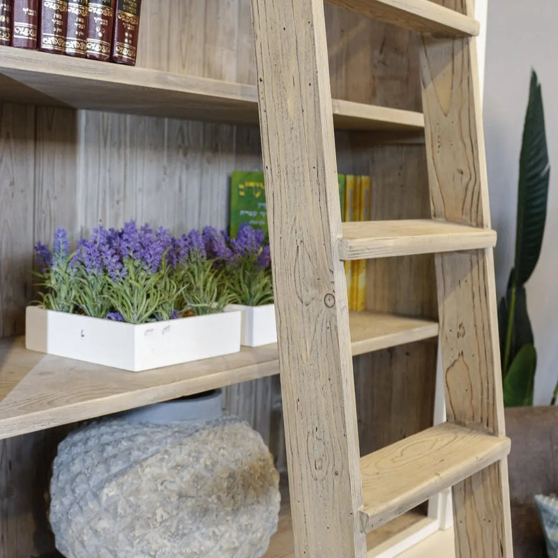 ספריה מעץ אורן פיני מלא, מעוצבת בסגנון פרובנס.