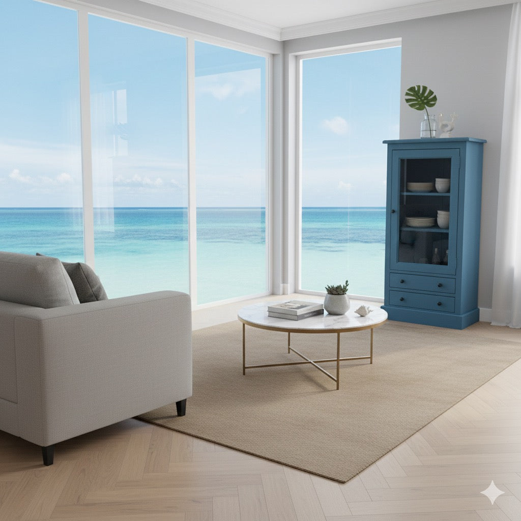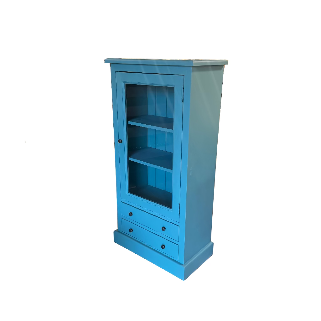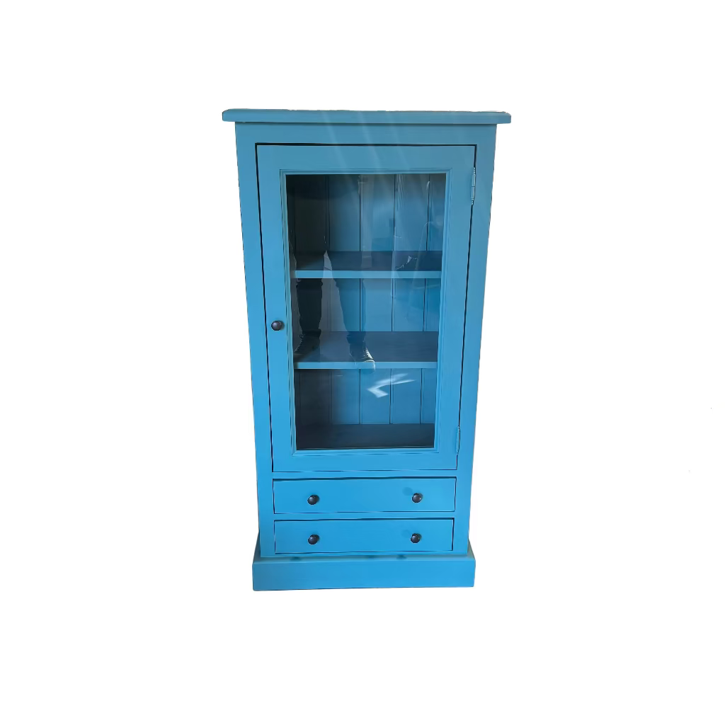 ארון עץ בעבודת יד, בגוון טורקיז חופי המכניס רעננות ואור לכל חלל.