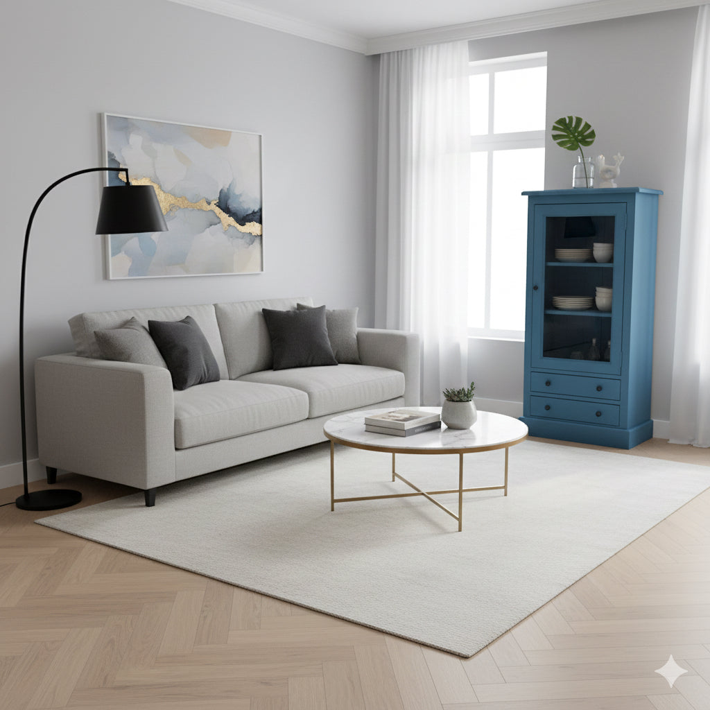 דלת זכוכית גדולה מציגה את הפריטים היפים בבית – כלי הגשה, כוסות, ספרים או אוספי נוי – ומעניקה מראה פתוח ומאוורר.