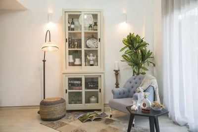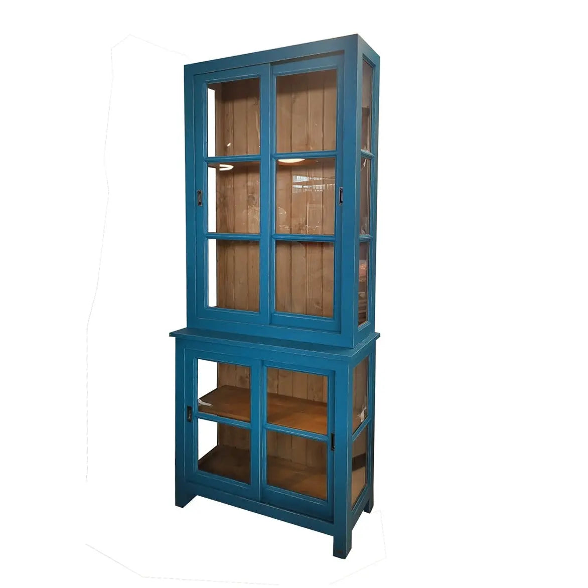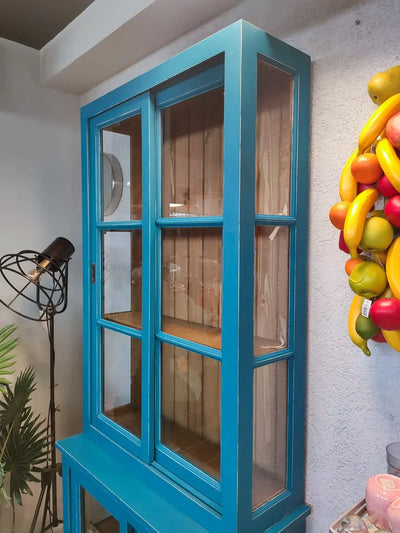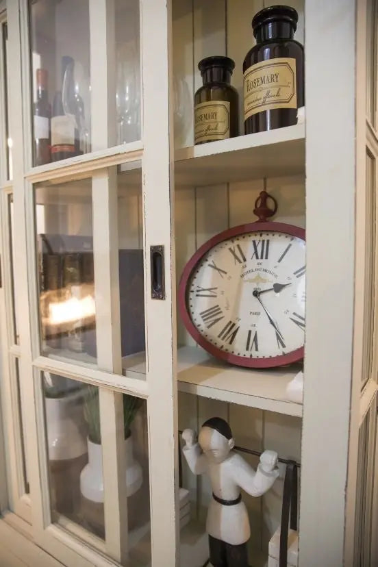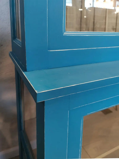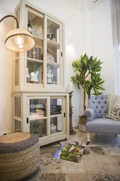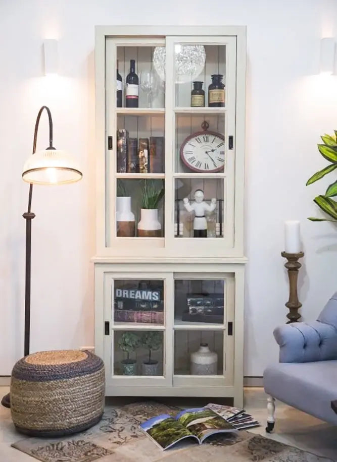 ויטרינה זכוכית מעץ אורן פיני מלא במראה פרובנס.