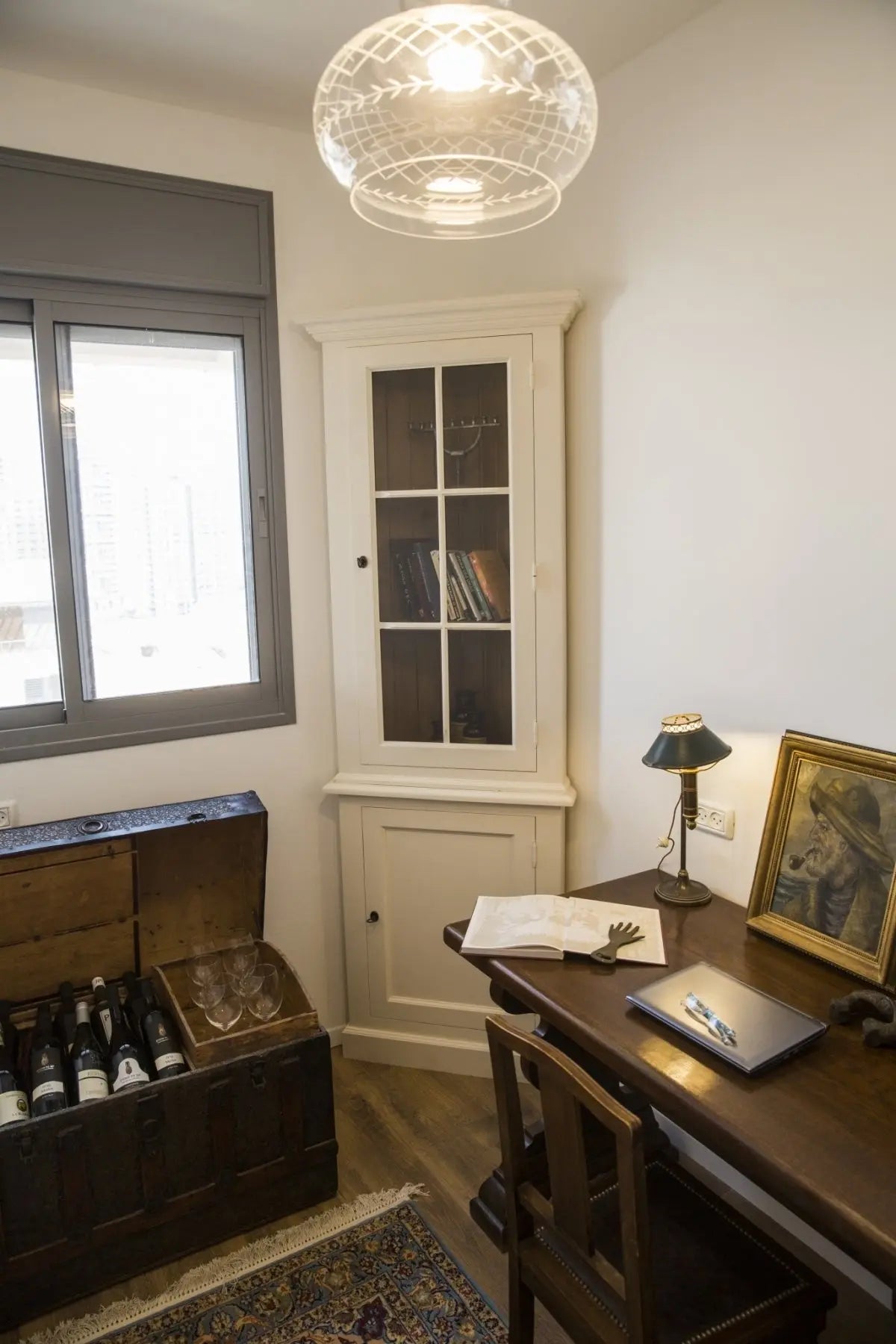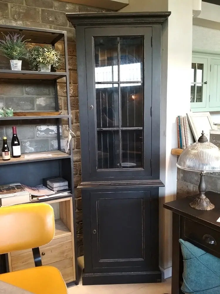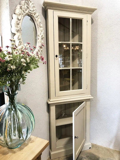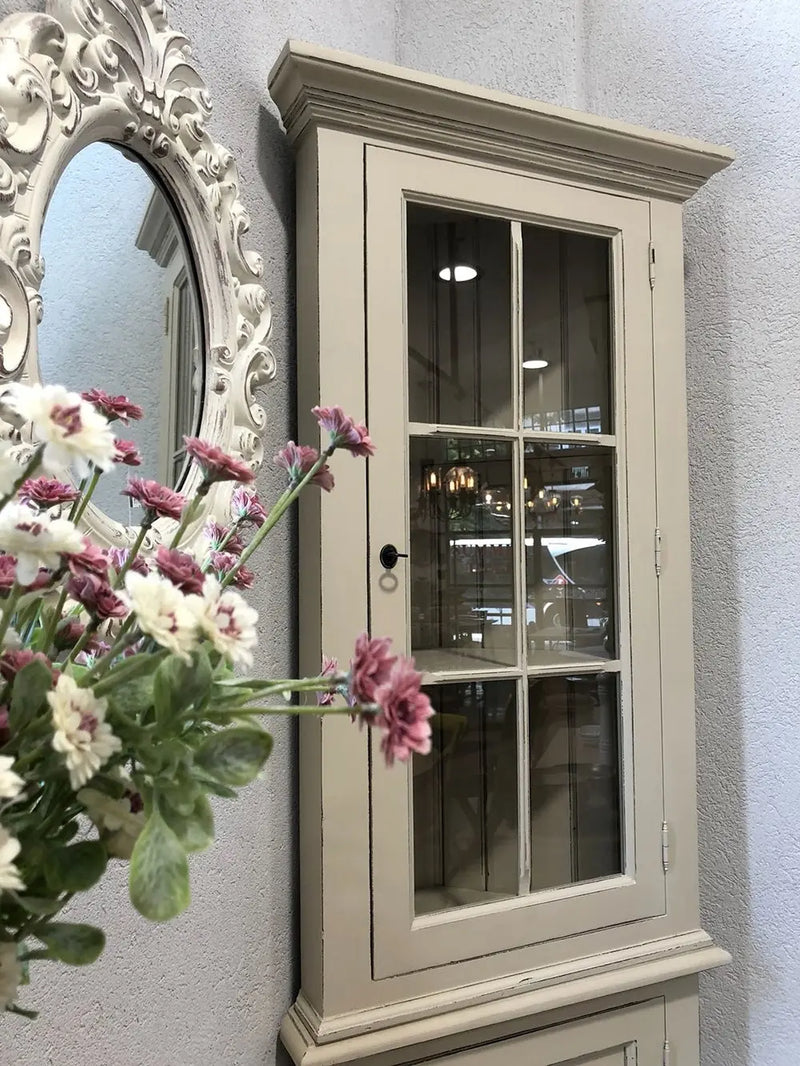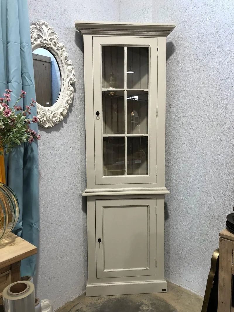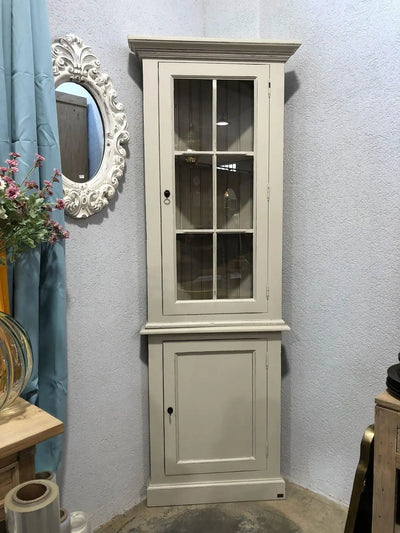 ויטרינה פינתית, בצורת משולש, מעץ אורן פיני משובח בסגנון פרובנס צרפתי