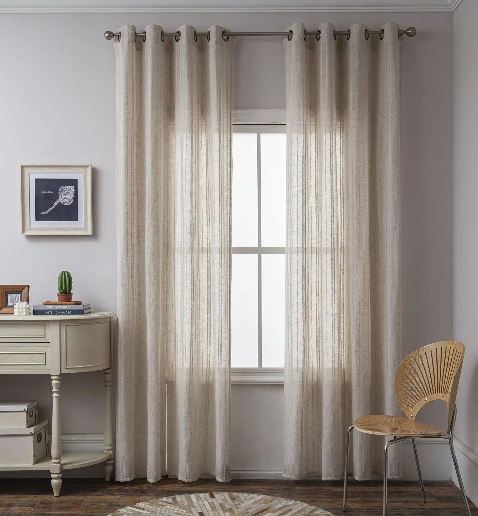 וילון פשתני עדין נקי ונעים, מתאים לסלון או לחדר שינה