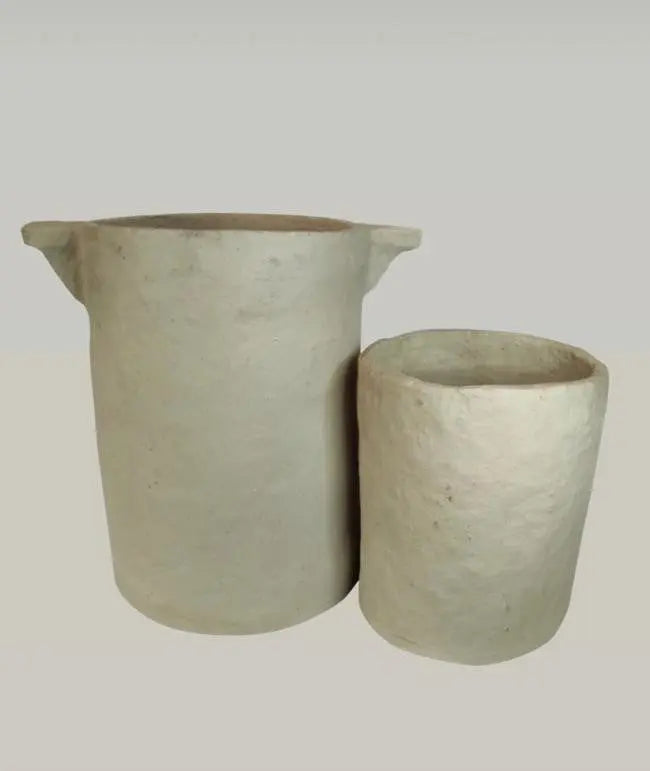 זוג כדים גדולים מעוצבים מעיסת נייר צבועים בלבן