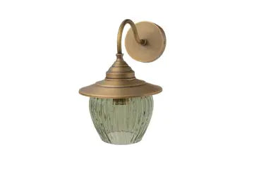מנורת קיר בעלת זרוע בשילוב של נחושת וזכוכית