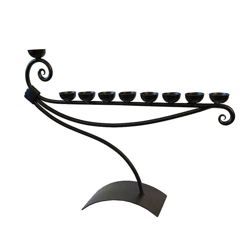 חנוכיה צבעונית ורשימה לחג החנוכה עשויה מיציקת ברזל