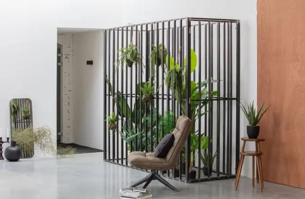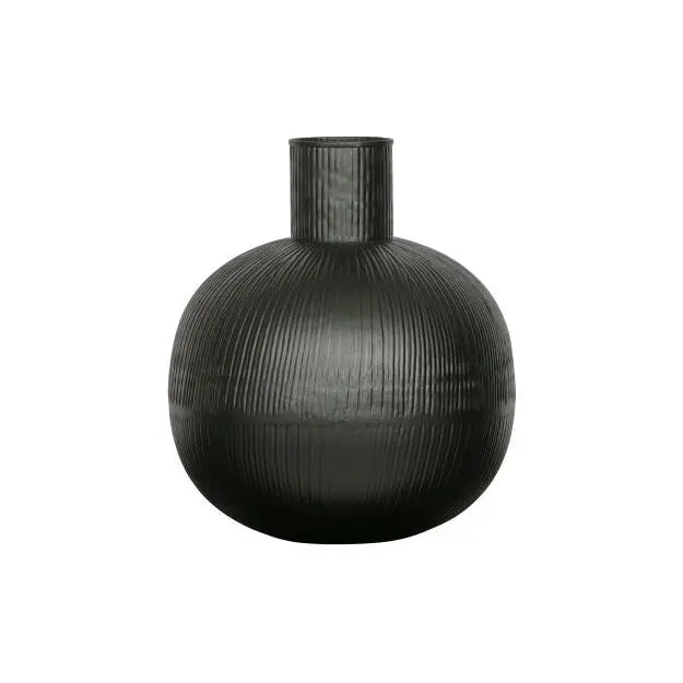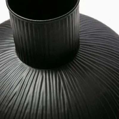 כד מודרני עשוי מתכת עם טקסטורה של פסים צפופים עם נגיעות מודרניות.