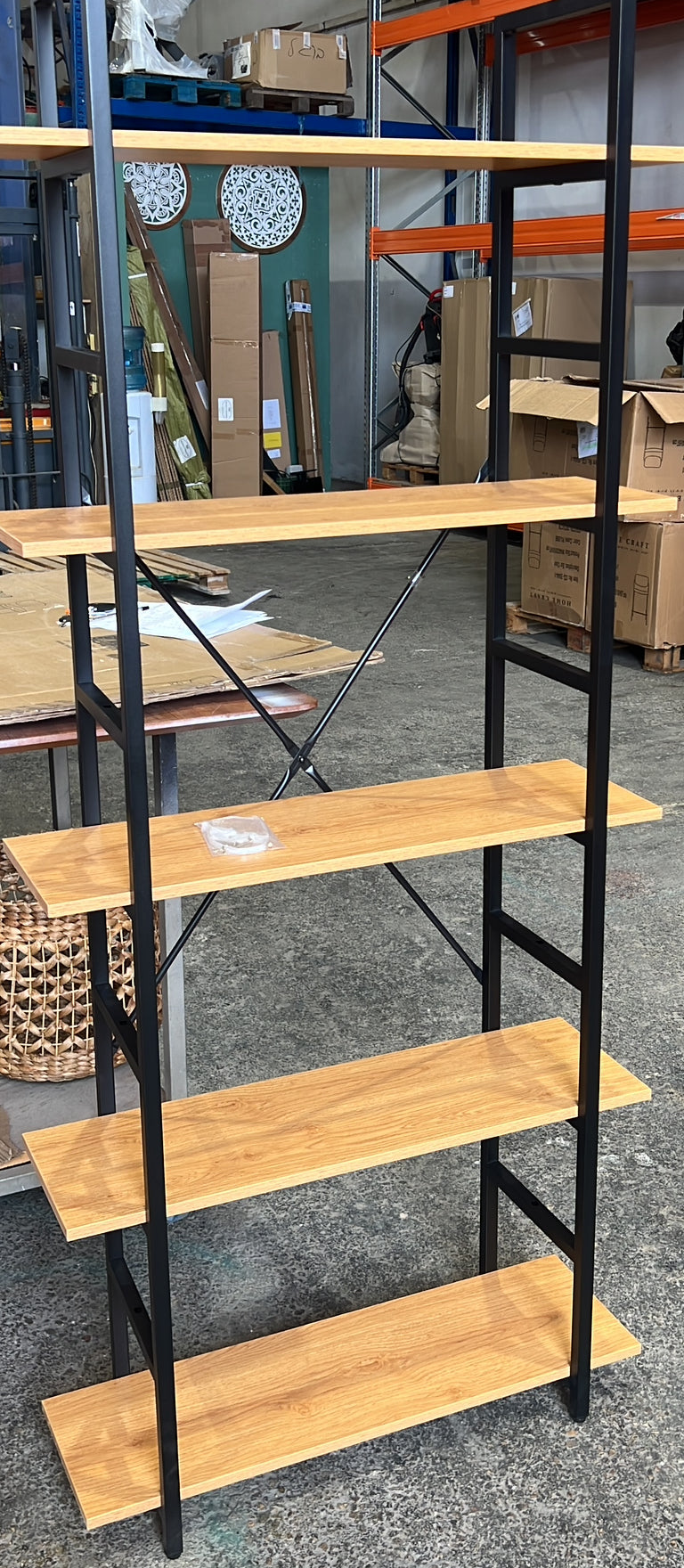 כוננית מדפים עשויה מסגרת ברזל וגב איקס ברזל