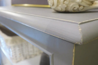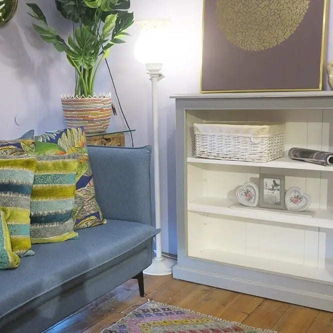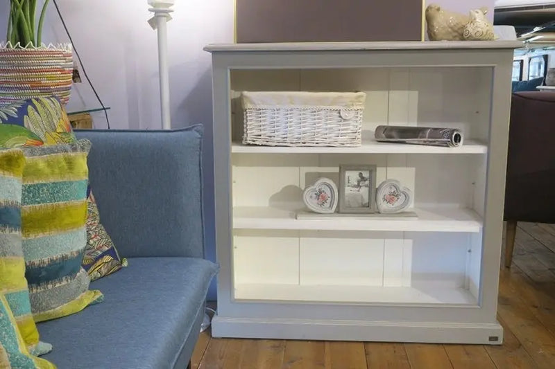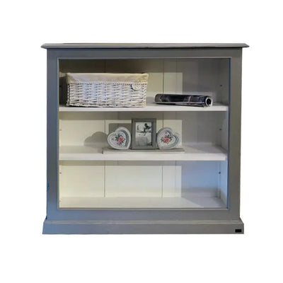 כוננית מדפים מקסימה מעץ פופלר משובח בעיצוב כפרי בגוון אפור עם קצוות משופשפים .