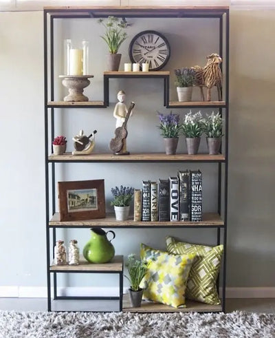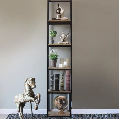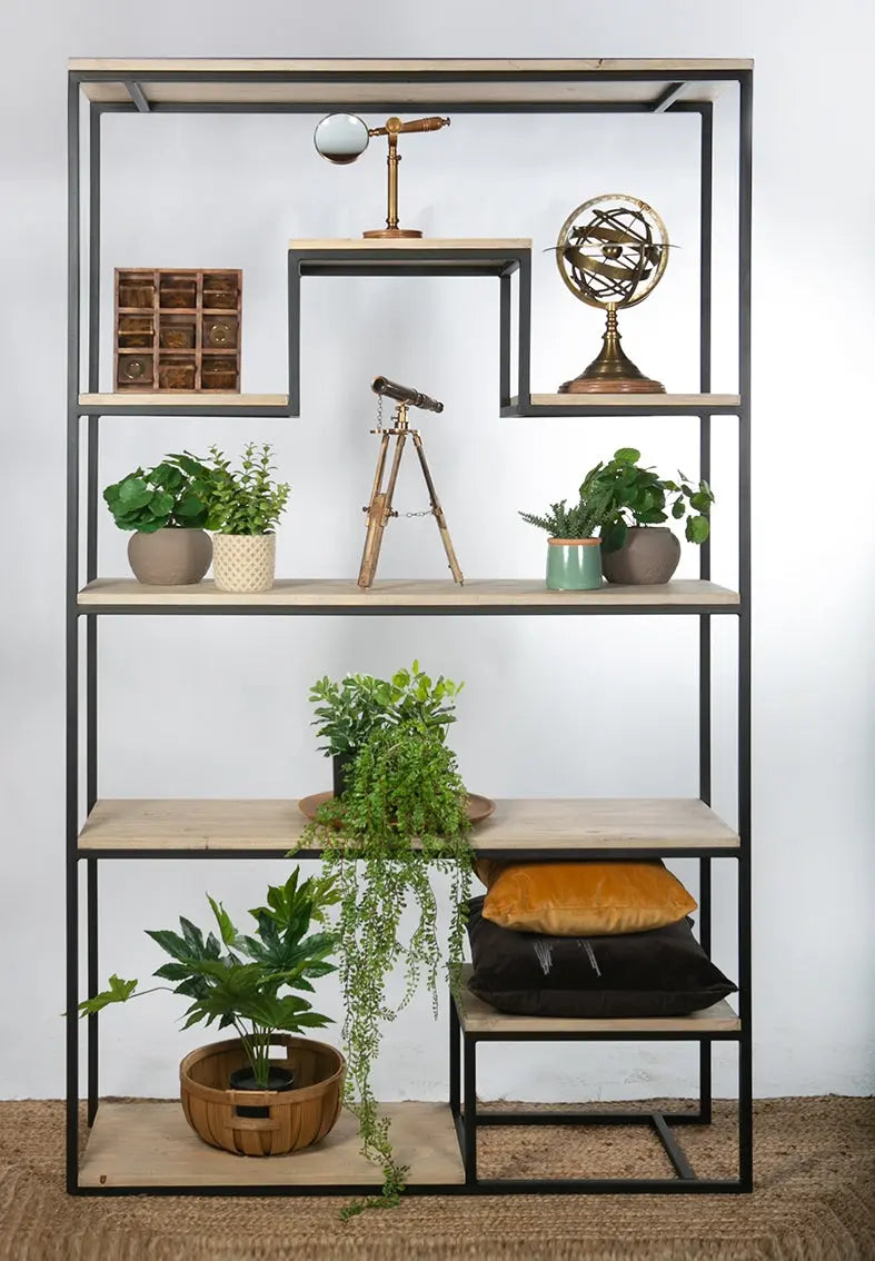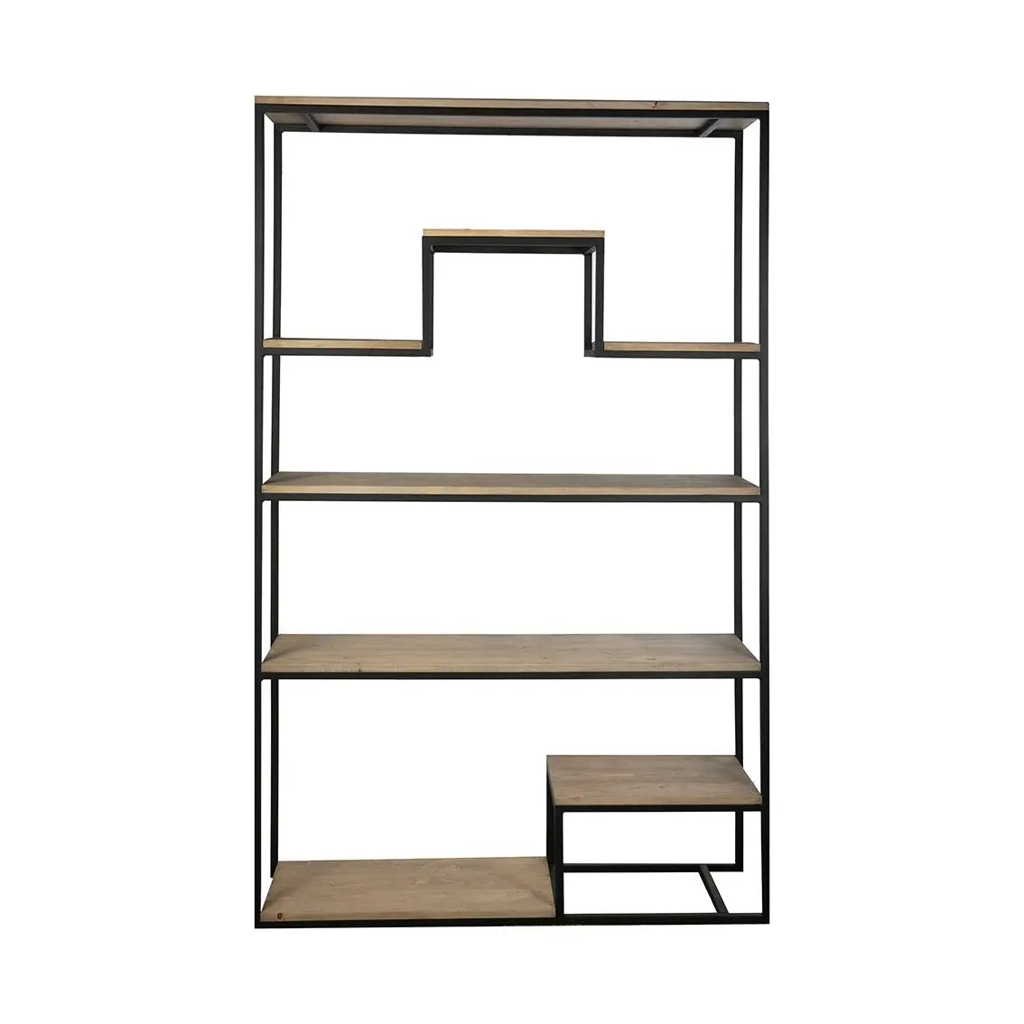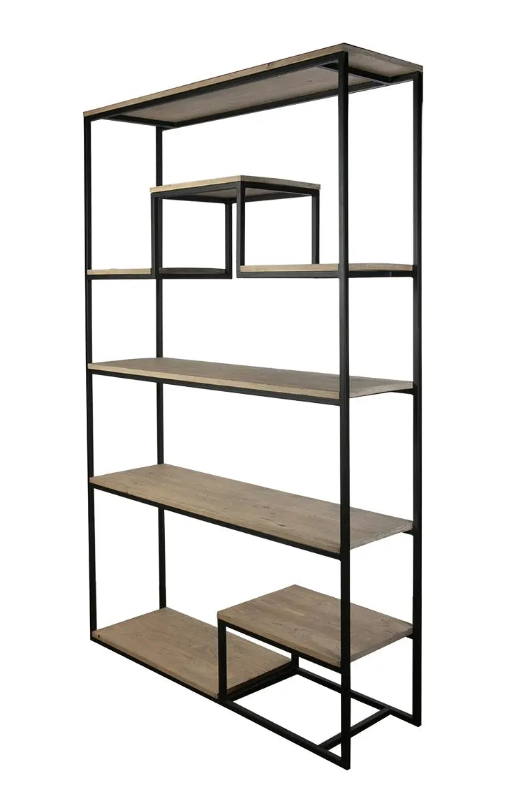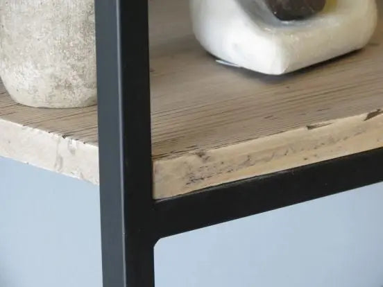 כוננית מדפים מעץ פופלר מלא בגוון OLD WOOD וברזל בצבע שחור.