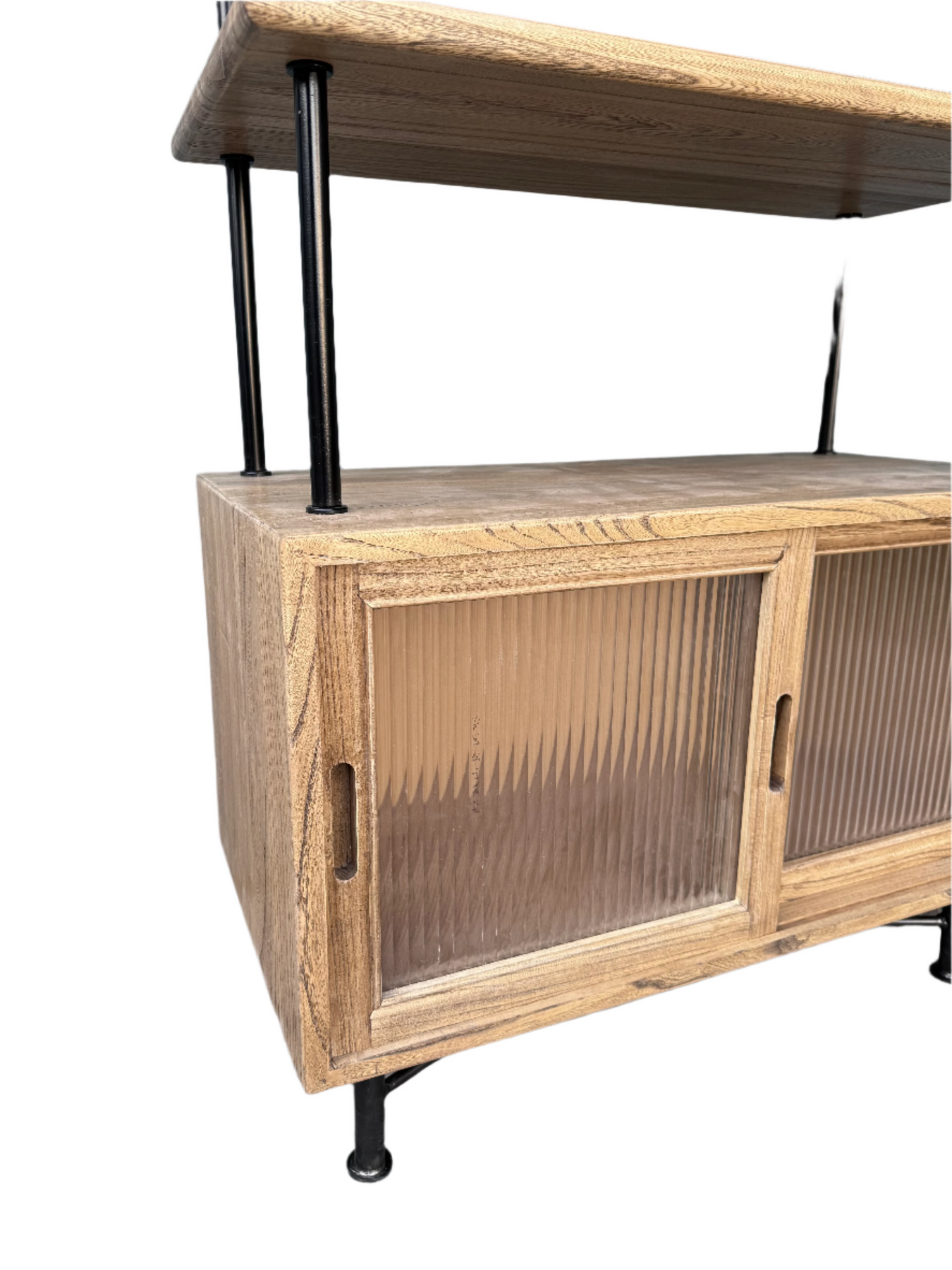 הכוננית בעלת מראה עכשווי , המשלבת בתוגה מדפים לצד אחסנה,