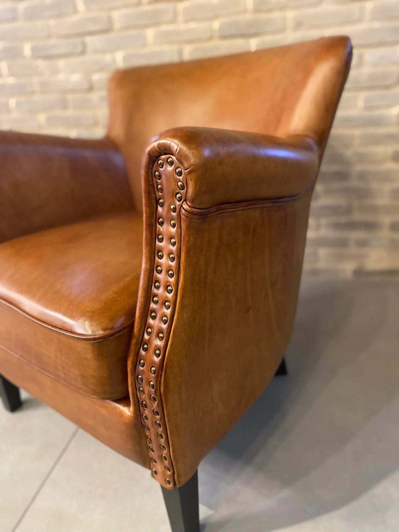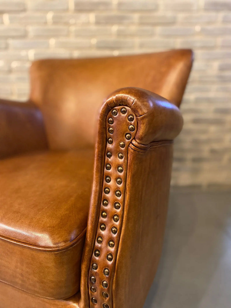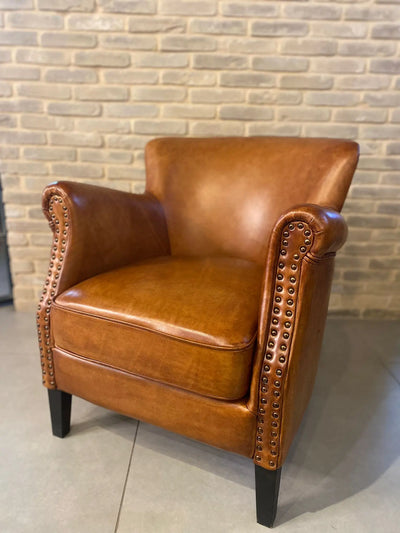 כורסאת עור מדהימה בסגנון וינטאג' עם ניטים .