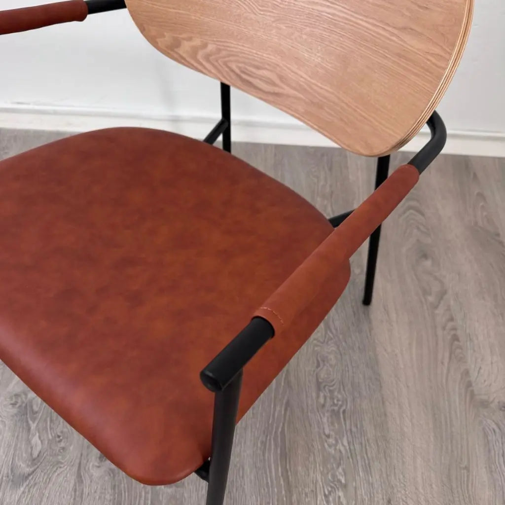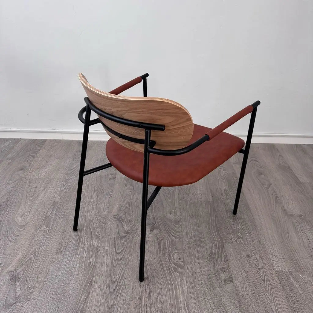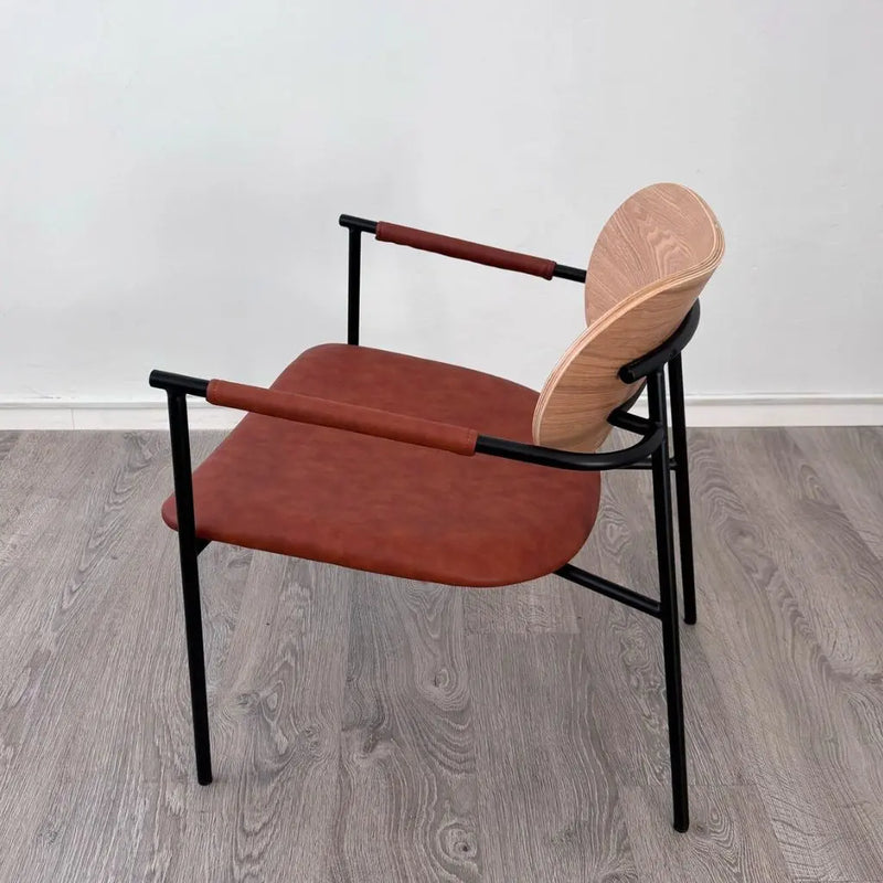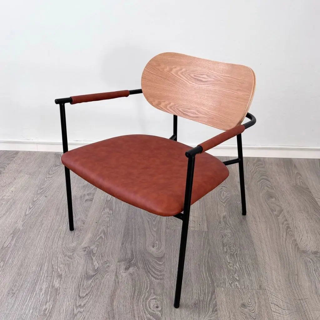 כורסא דגם אביהו מתאפיין בידיות מתכת שחורות ומרשימות, המעניקות לו מראה אלגנטי וייחודי. משענת גב מעץ אשר מוסיפה נגיעה חמימה וטבעית לעיצוב. ריפוד דמוי העור האיכותי מבטיחה נוחות ישיבה מושלמת לאורך זמן.