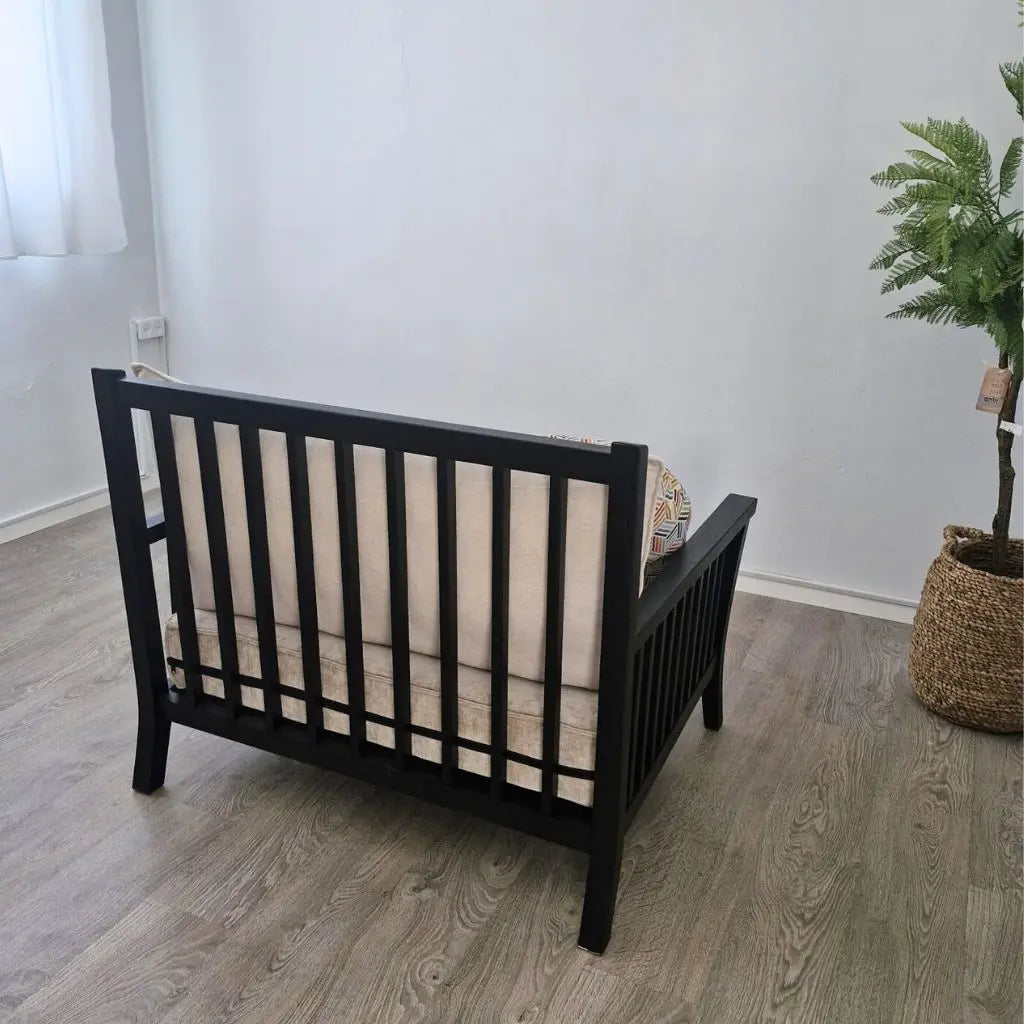 כורסת ה dove seat הינה התוספת המושלמת לכל חלל מודרני או כפרי בביתכם, הוא משלב עיצוב מינימליסטי וקווים נקיים עם נוחות ישיבה מפנקת במיוחד. הכורסא מתאפיינת במסגרת עץ אלון מלא בעלת סורגים אנכיים בצדדים ובגב היוצרים מראה אוורירי ומכרבל.