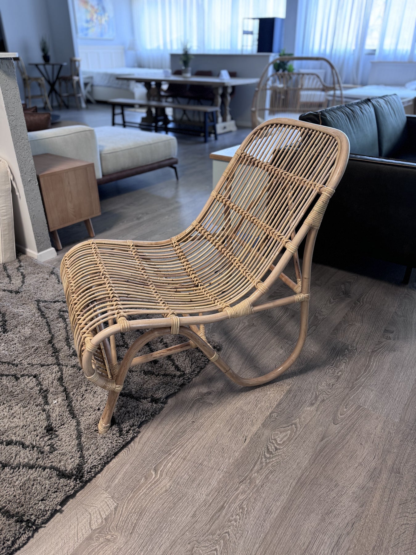 כורסאת ראטן יפייפיה, מראה כפרי עדין בצבע טבעי. מגיע עם כרית ישיבה לבנה