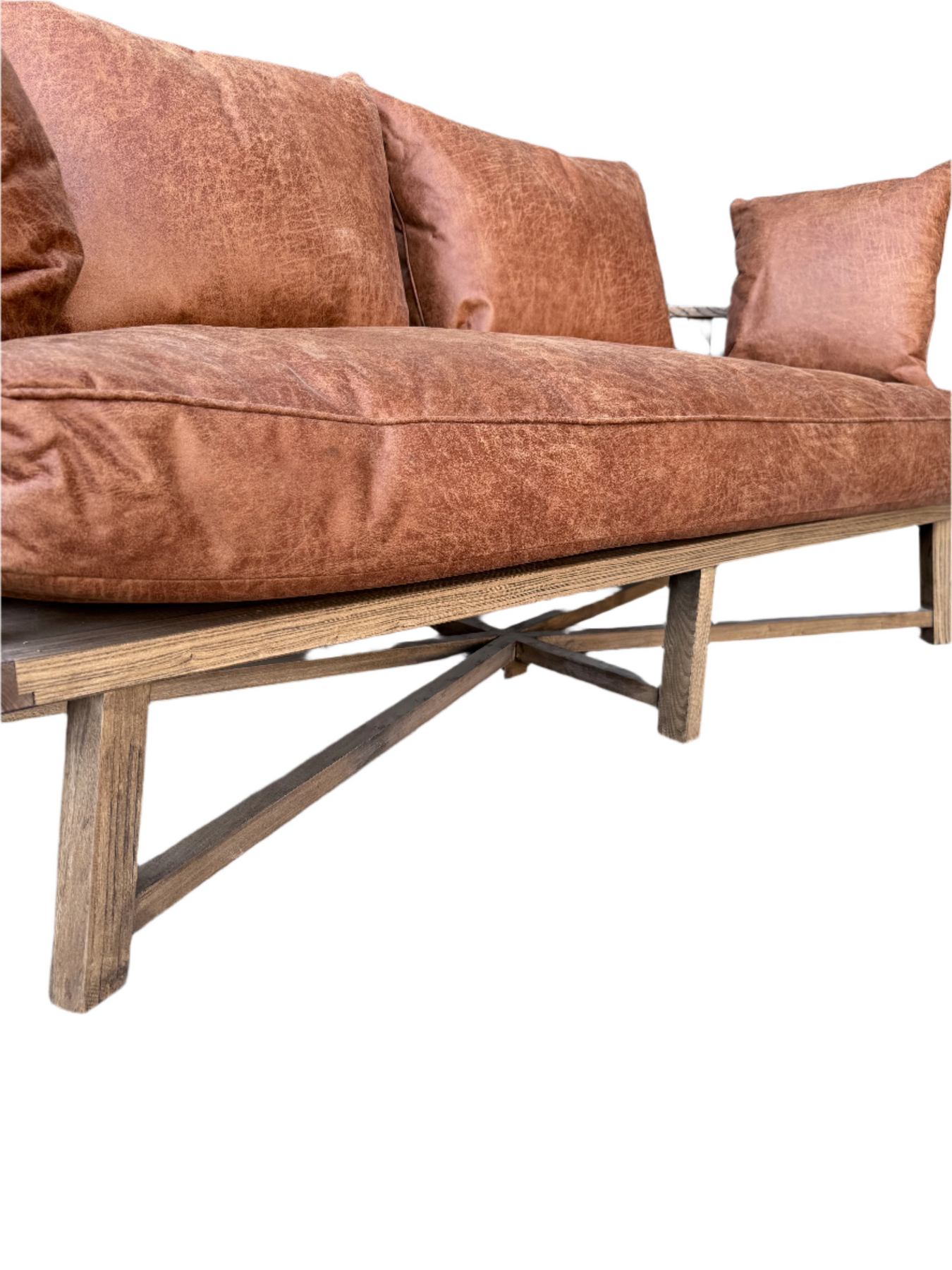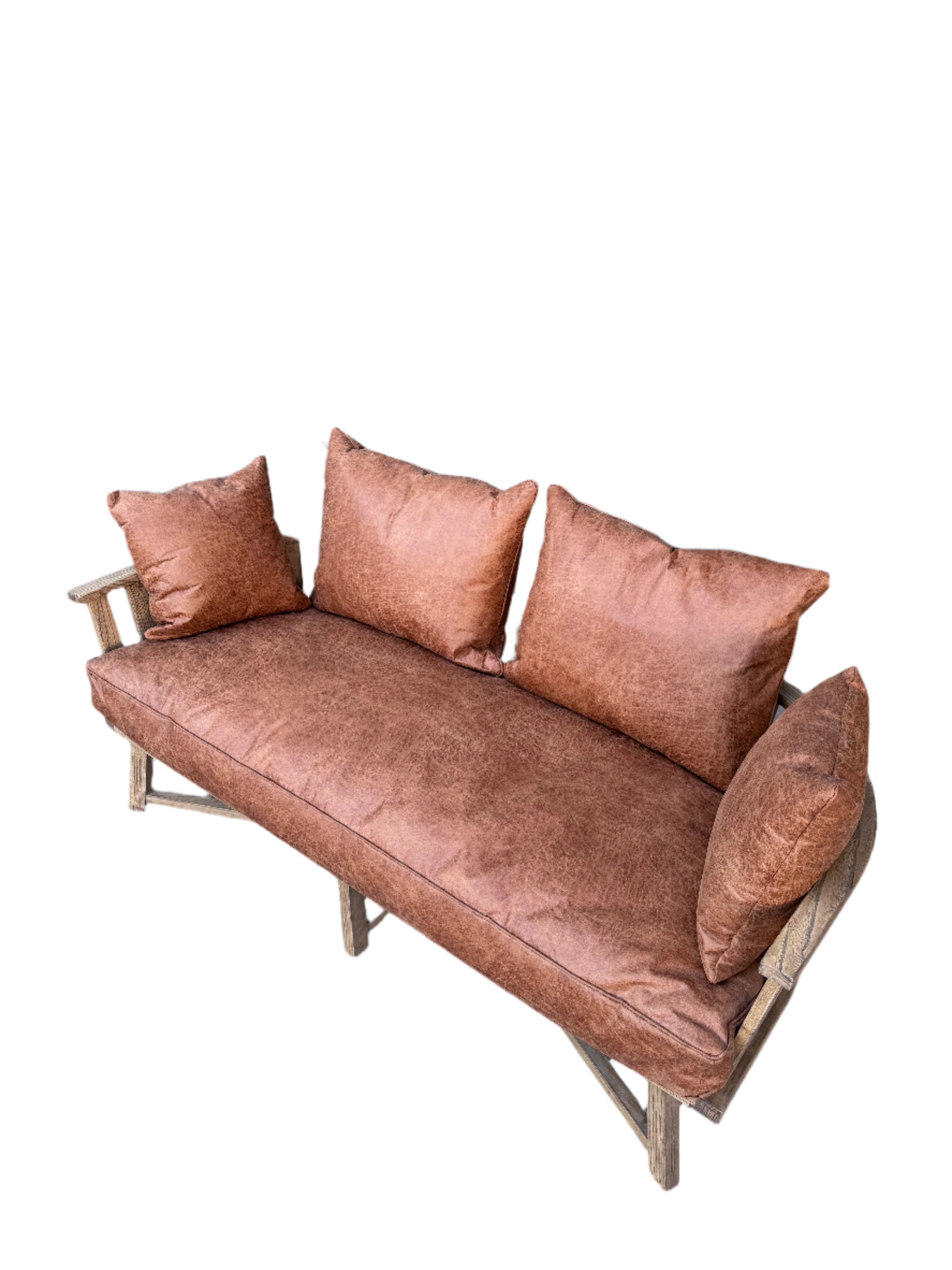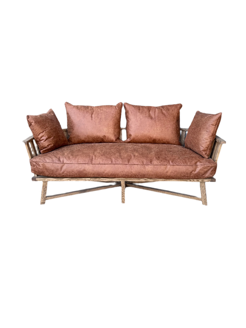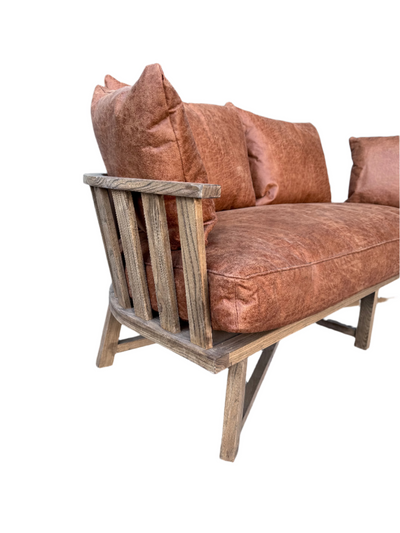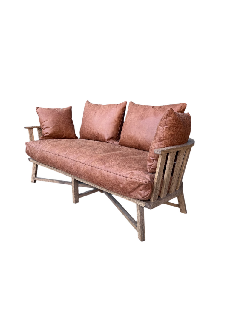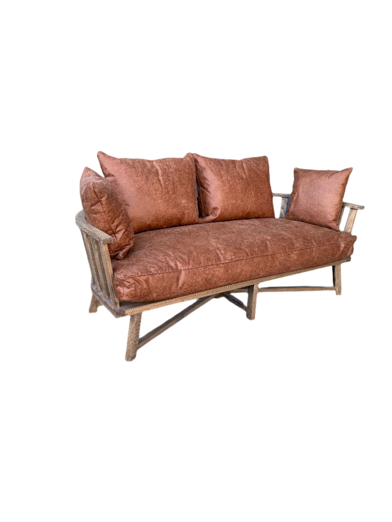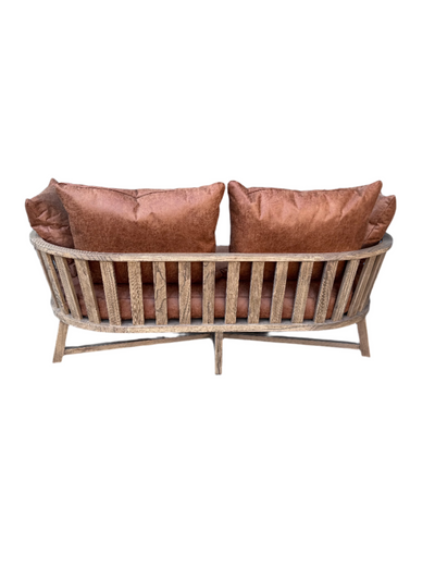 , עם ריפוד עור בצבע קוניאק כורסא זוגית מעוצבת מעץ אלון מלא .