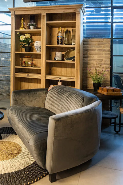 כורסת זוגית דגם מאזרטי קטיפה אפורה.