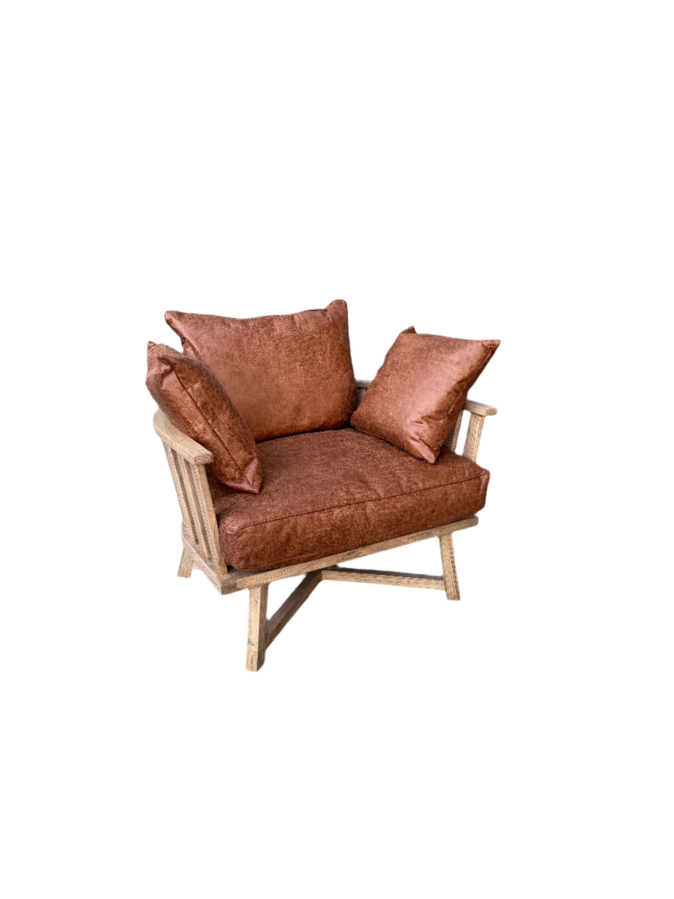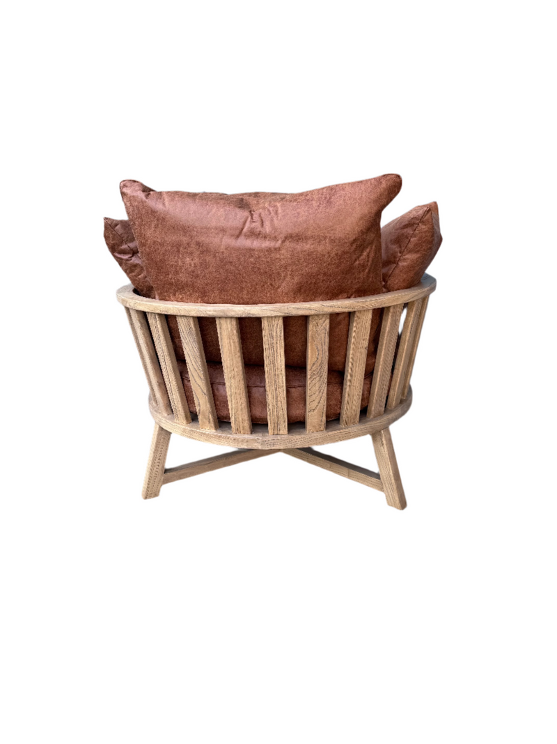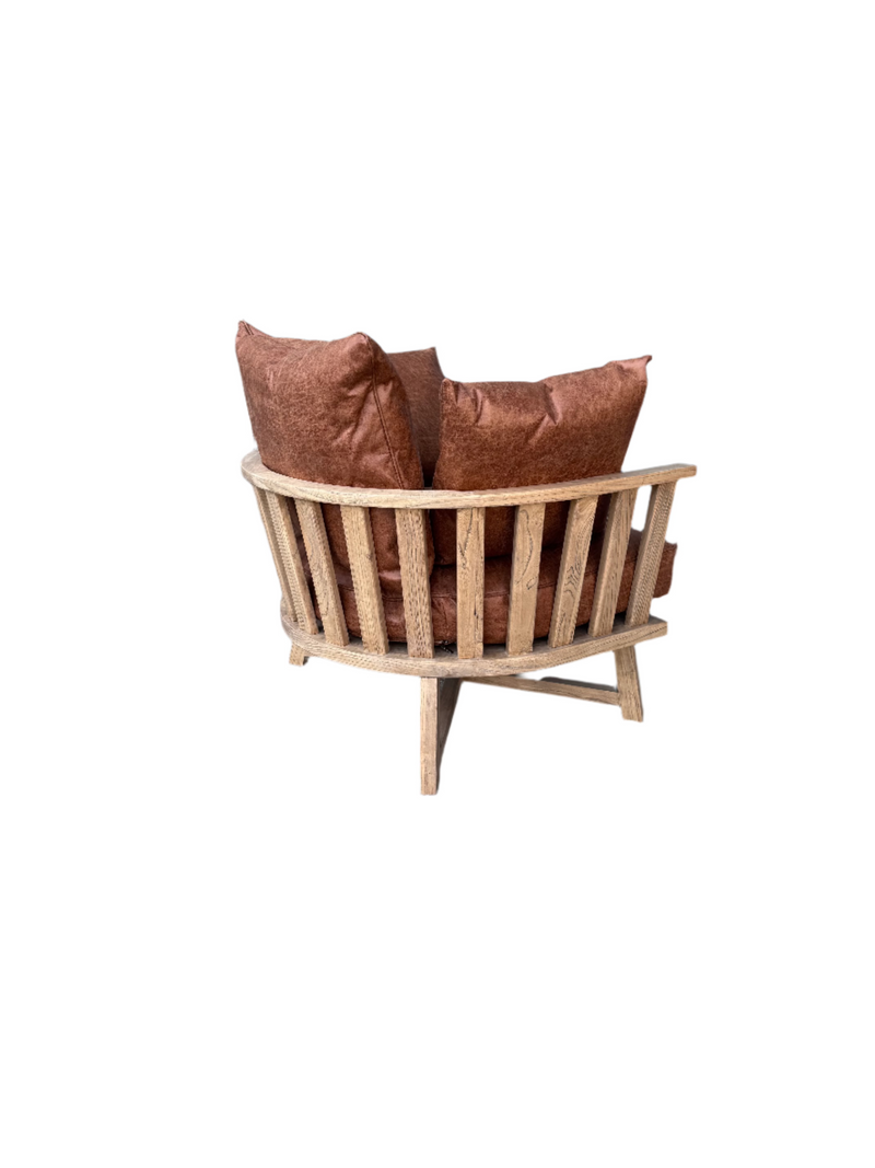 לכורסא היפיפייה מסגרת עץ מעוגלת ודקורטיבית בגוון טבעי ומקסים.
