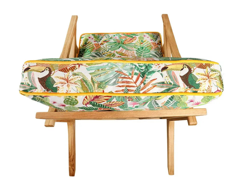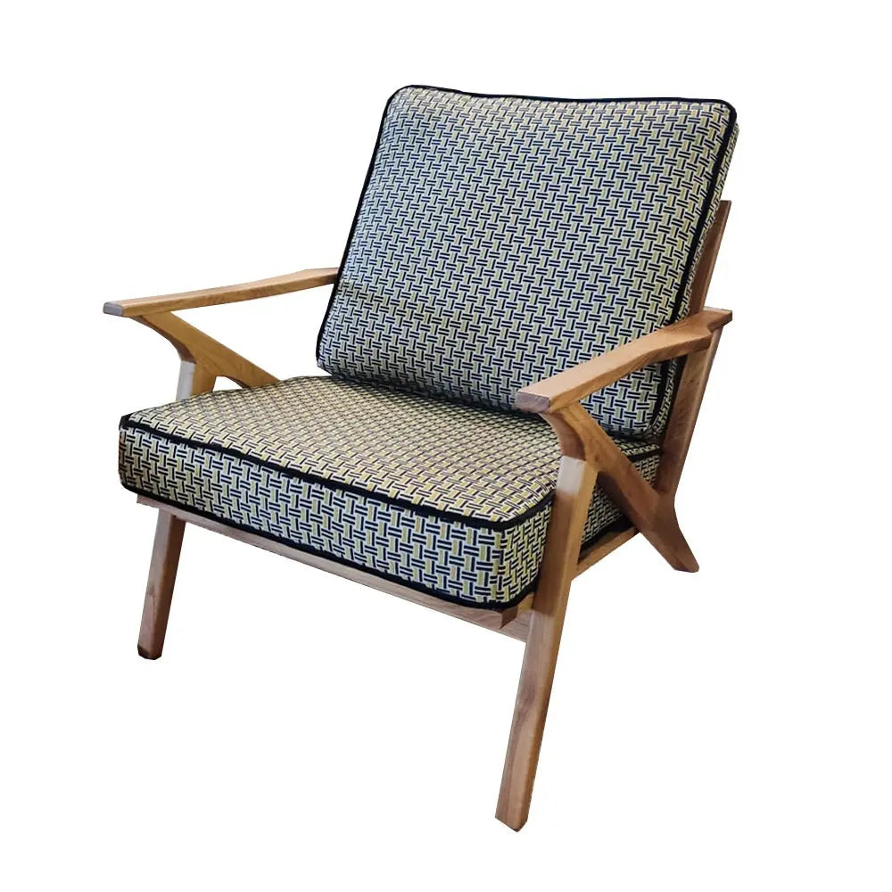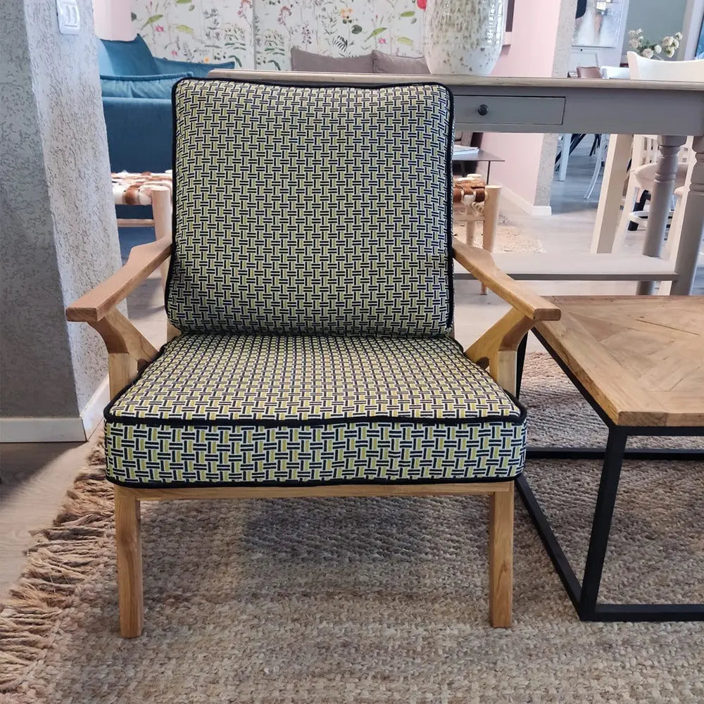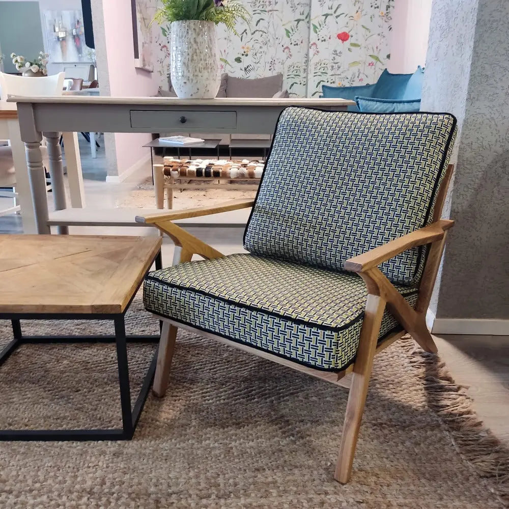 הכורסא עשויה מעץ אלון ניתן להזמין את הכורסא בבדים מקטלוגים שונים