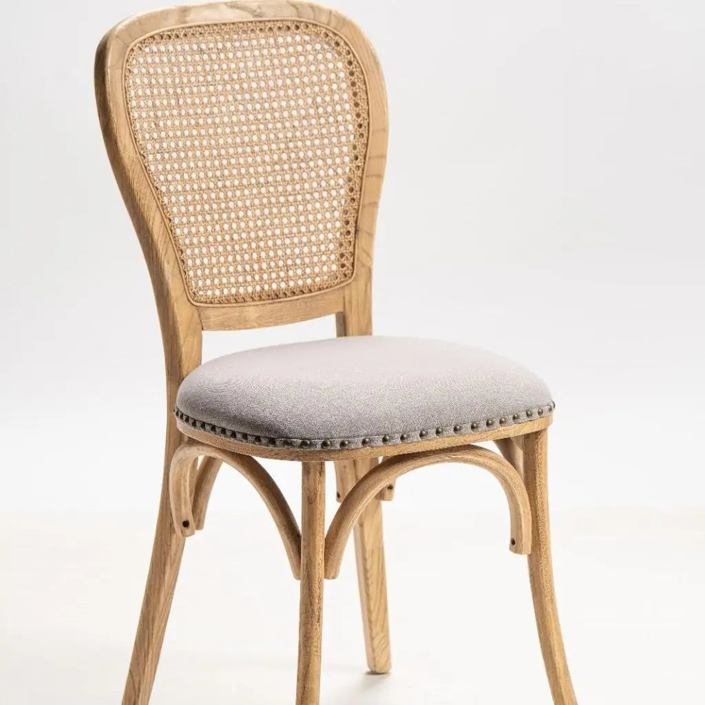 מושב הכסא מרופד בבד אפור, שילוב של נוחות ויופי