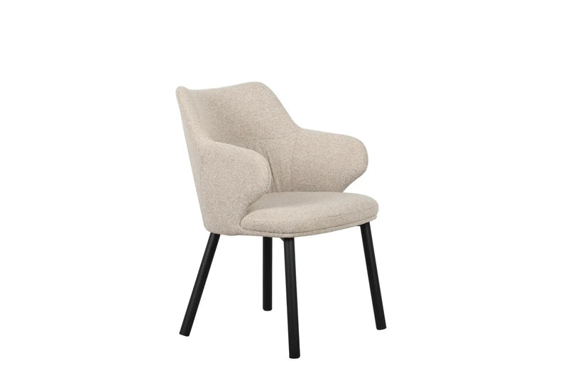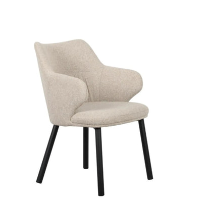 כיסא אוכל קלאסי ויפה מרופד בבד עם ידיות מרופדות צבע שמנת