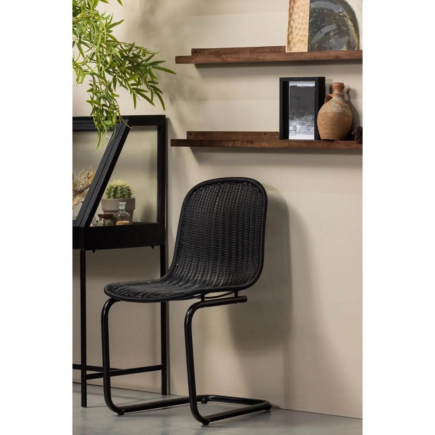 כסא אוכל עשוי מראטאן סנטטי ומתכת , מתאים לשימוש בתוך הבית ומחוצה לו.