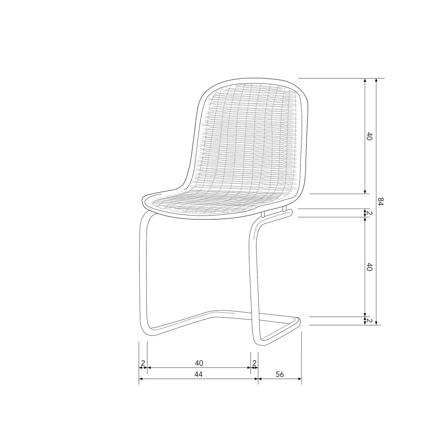 מידות כיסא האוכל גובה מהרצפה 84 ס"מ, גובה מושב 45 ס"מ ועומד על רגליים בגובה 44 ס"מ. רוחב המושב של הכסא 44 ס"מ - כיסא האוכל יכול לשאת עד 150 ק"ג