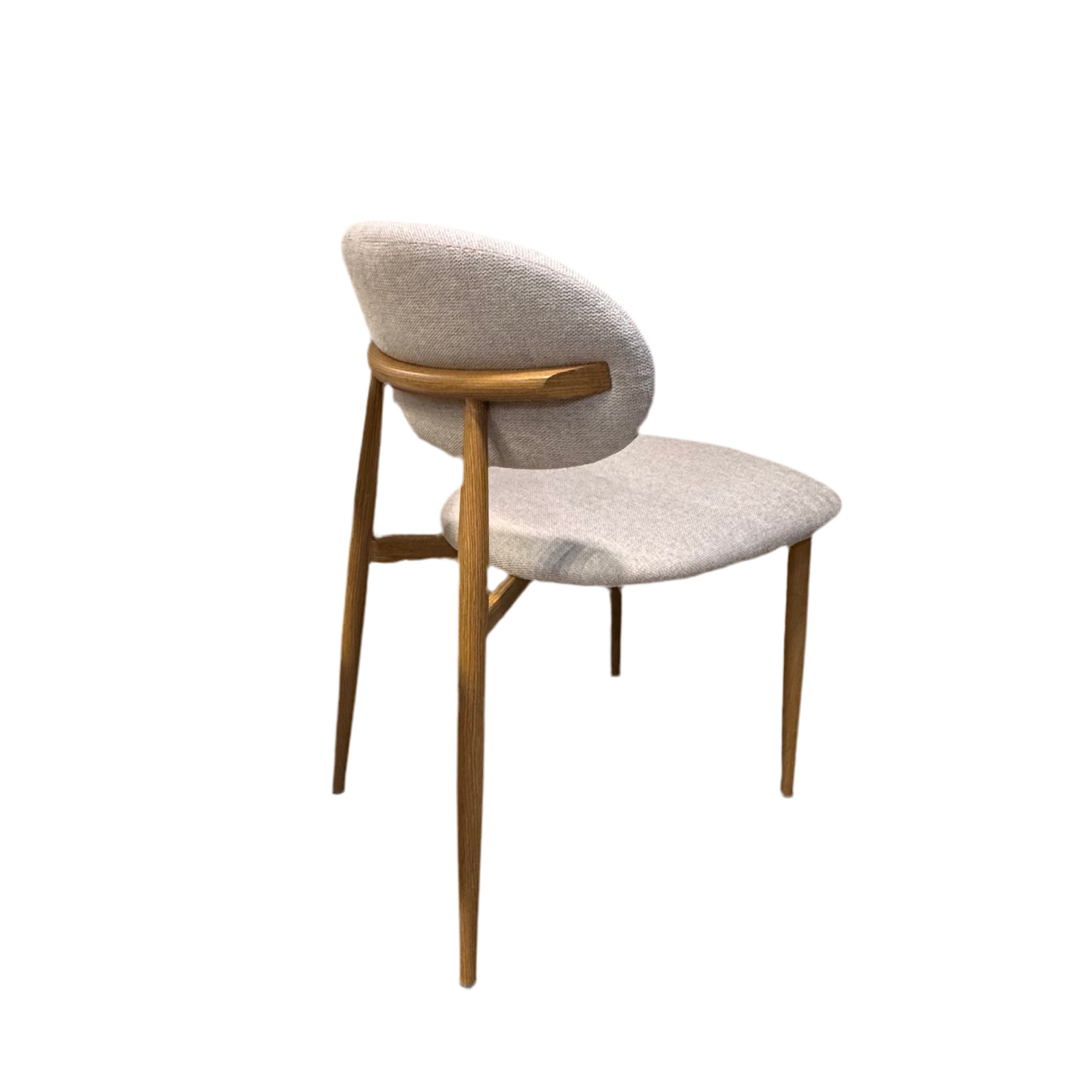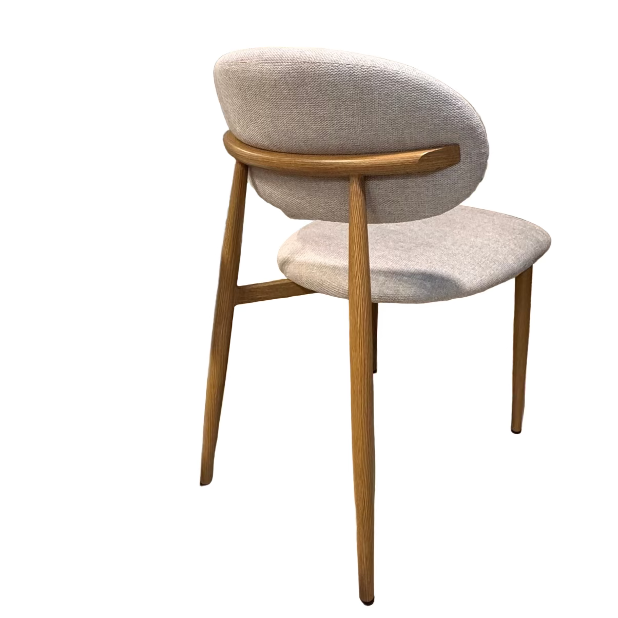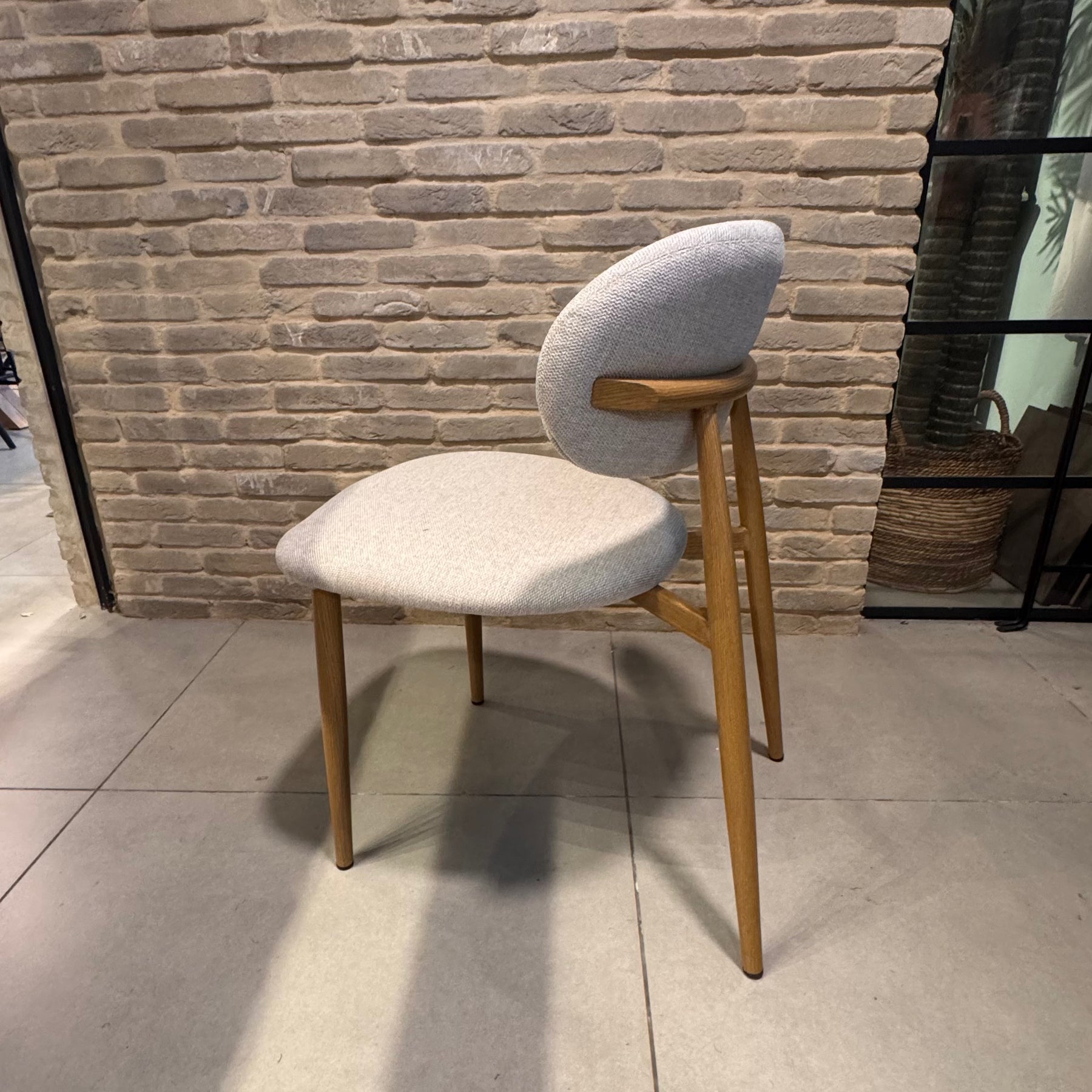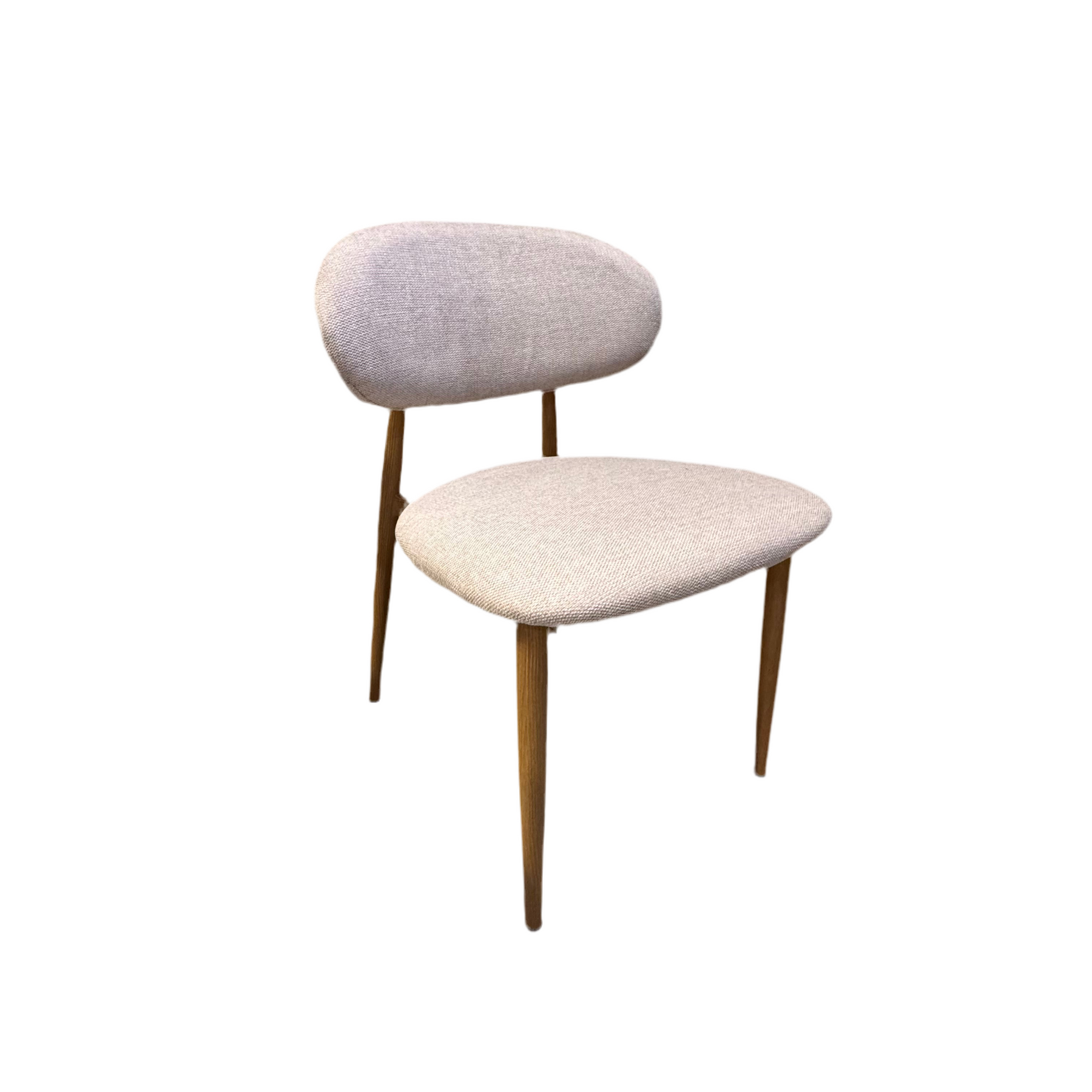 .כסא מעוצב במראה נקי מרופד בבד בצבע בז, נעים למגע ונוח מאוד לישיבה