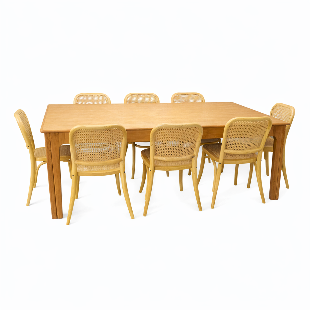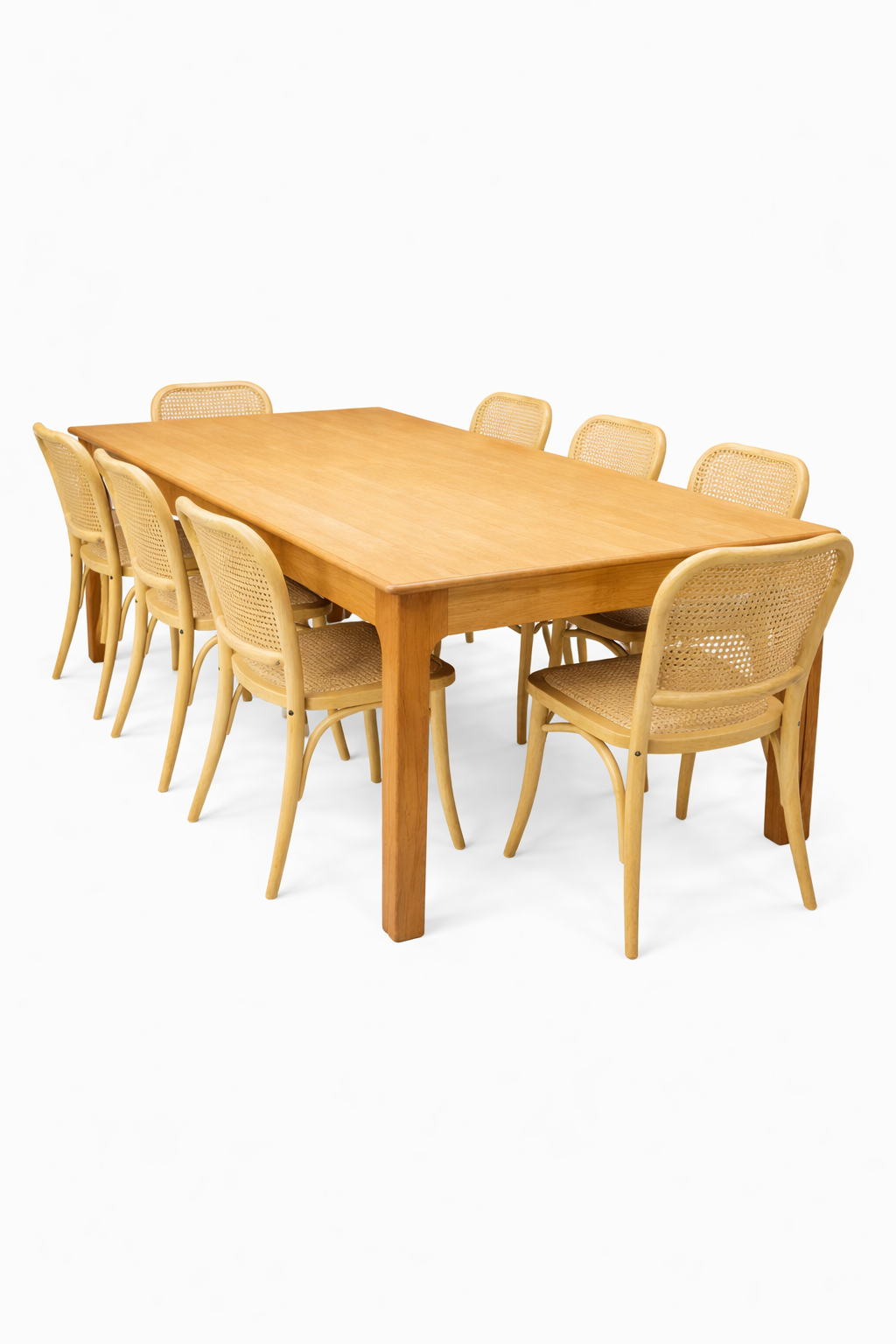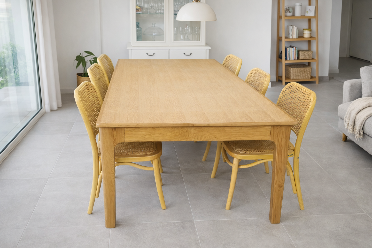 כסא אוכל מעץ אלון מלא בגוון טבעי בהיר בשילוב גב ומושב מראטן ,