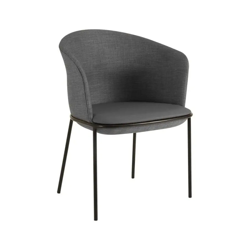 כורסת אירוח מעוצבת, ריפוד בד אפור כהה, שלד מתכת שחור