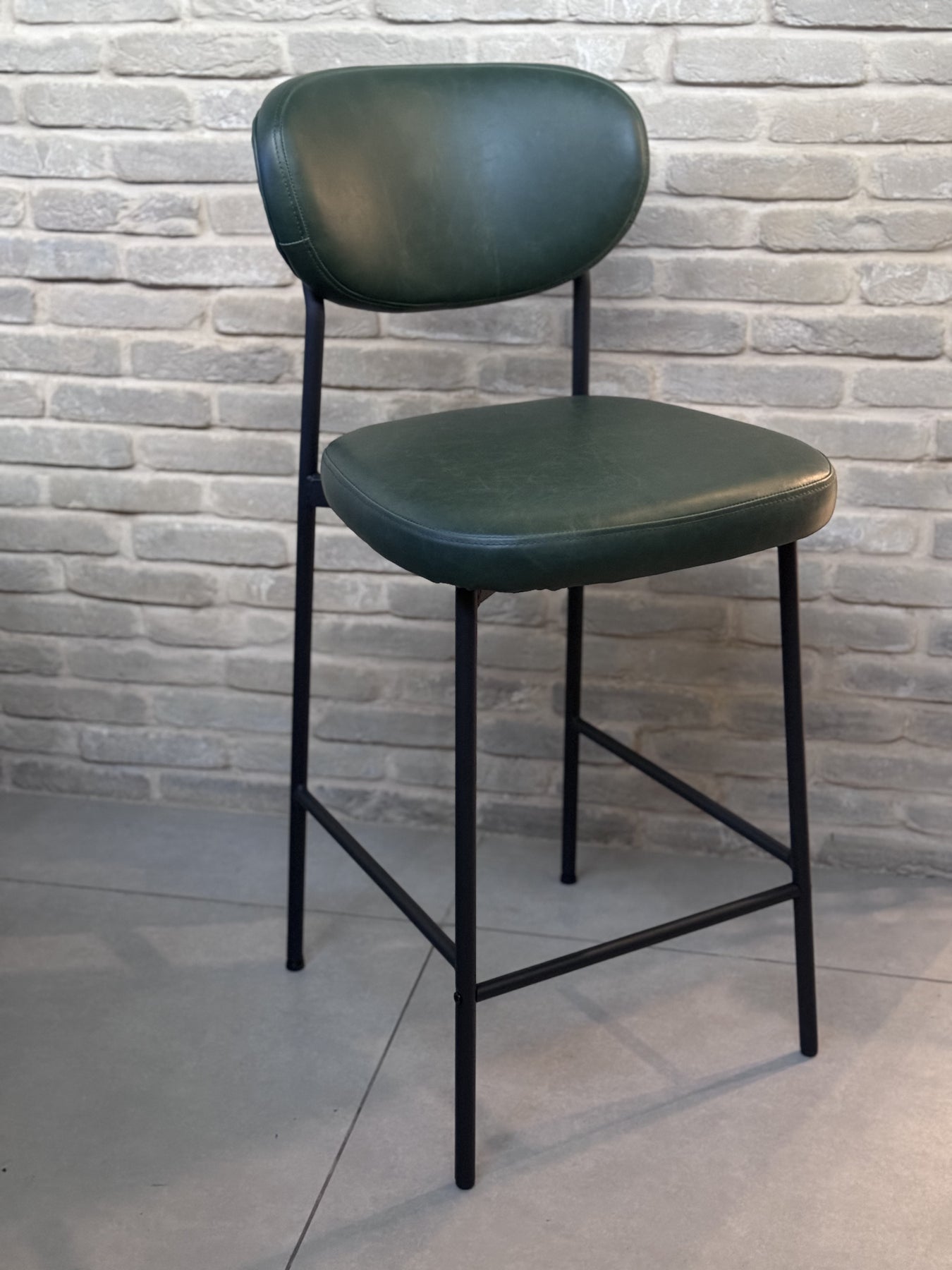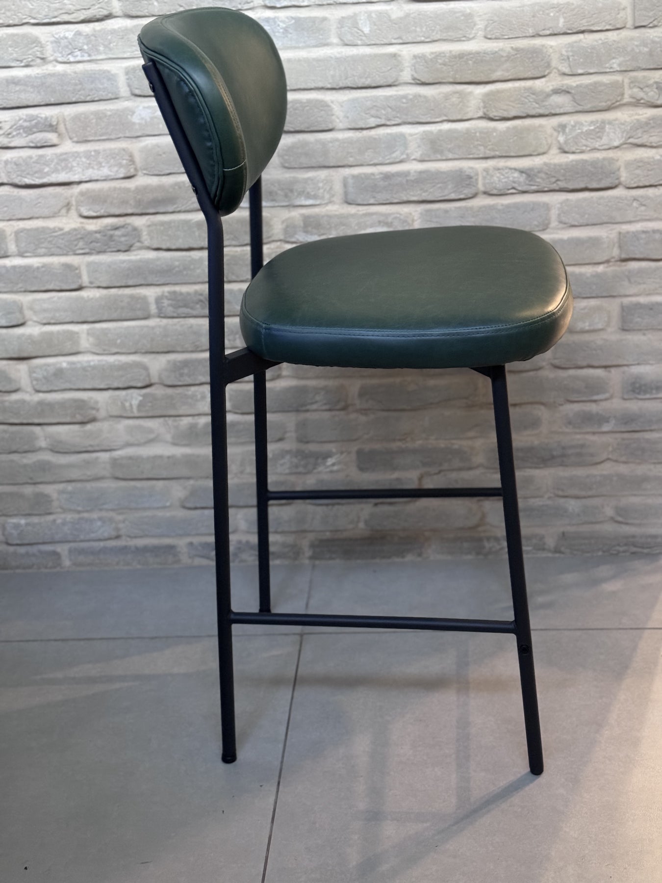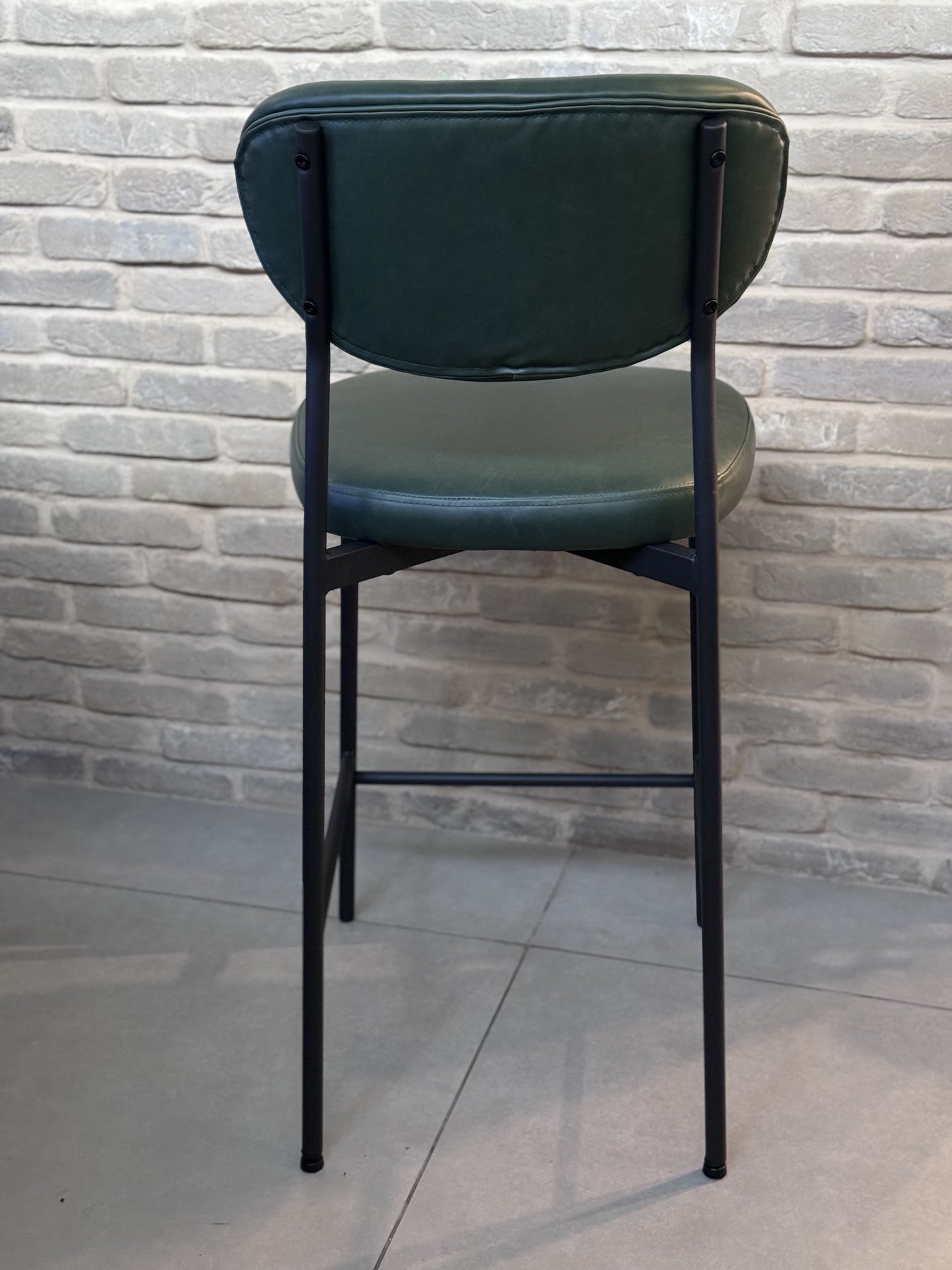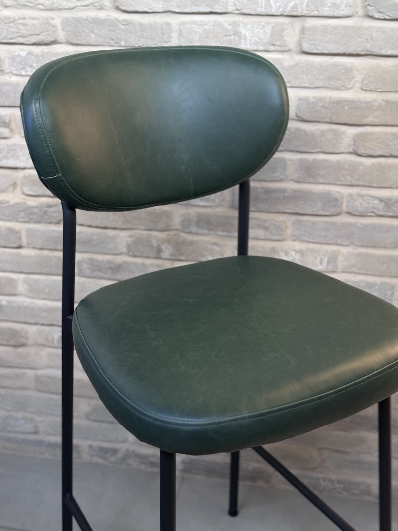 כסא בר משגע מברזל ודמוי עור בצבע ירוק כהה