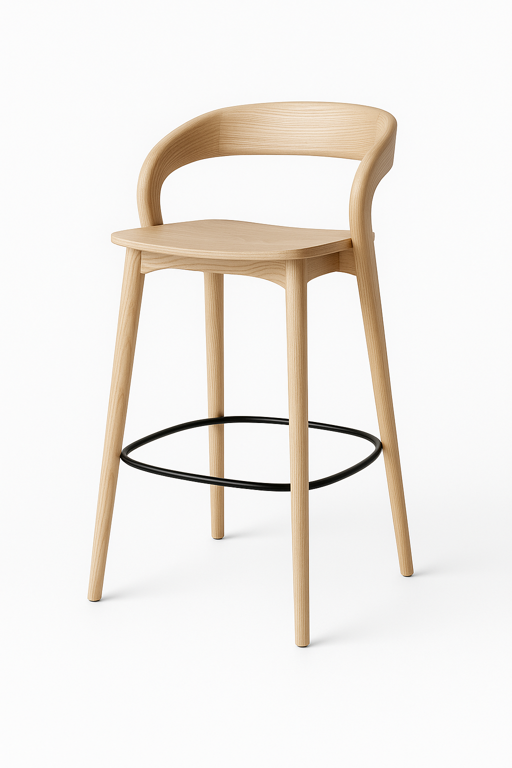 המושב הרחב והרגליים האלכסוניות מעניקים יציבות, בעוד קשת הגב המעוצבת מוסיפה טאצ’ עכשווי המתאים לכל חלל – פינת אוכל משפחתית, אי במטבח או בר ביתי.