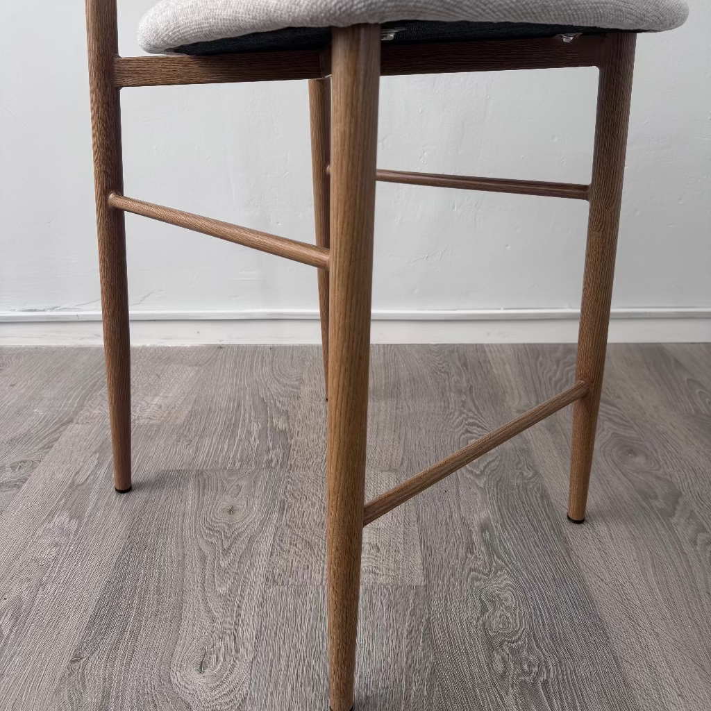 מרופד בבד דמוי עור מהמם בעל גוף אלומניום צבוע בגוון עץ אלון עם ריפוד בד בגוון בז .