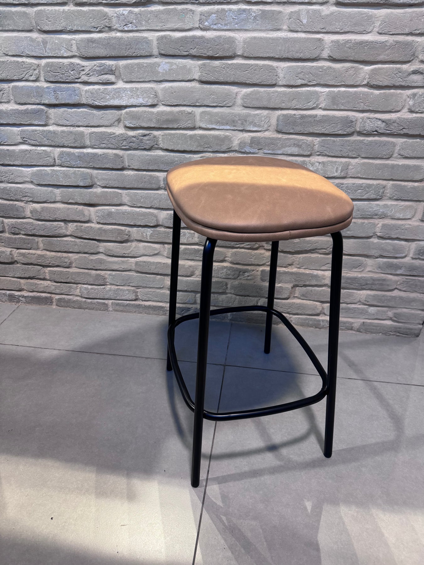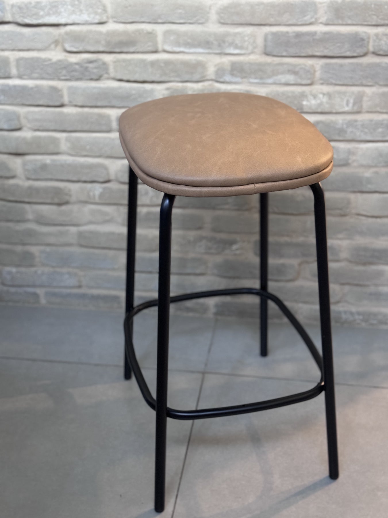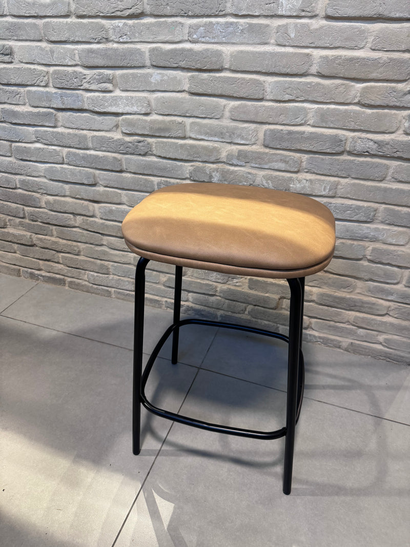 כסא בר מרופד בבד דמוי עור עם רגלי ברזל דקות ומעוצבות