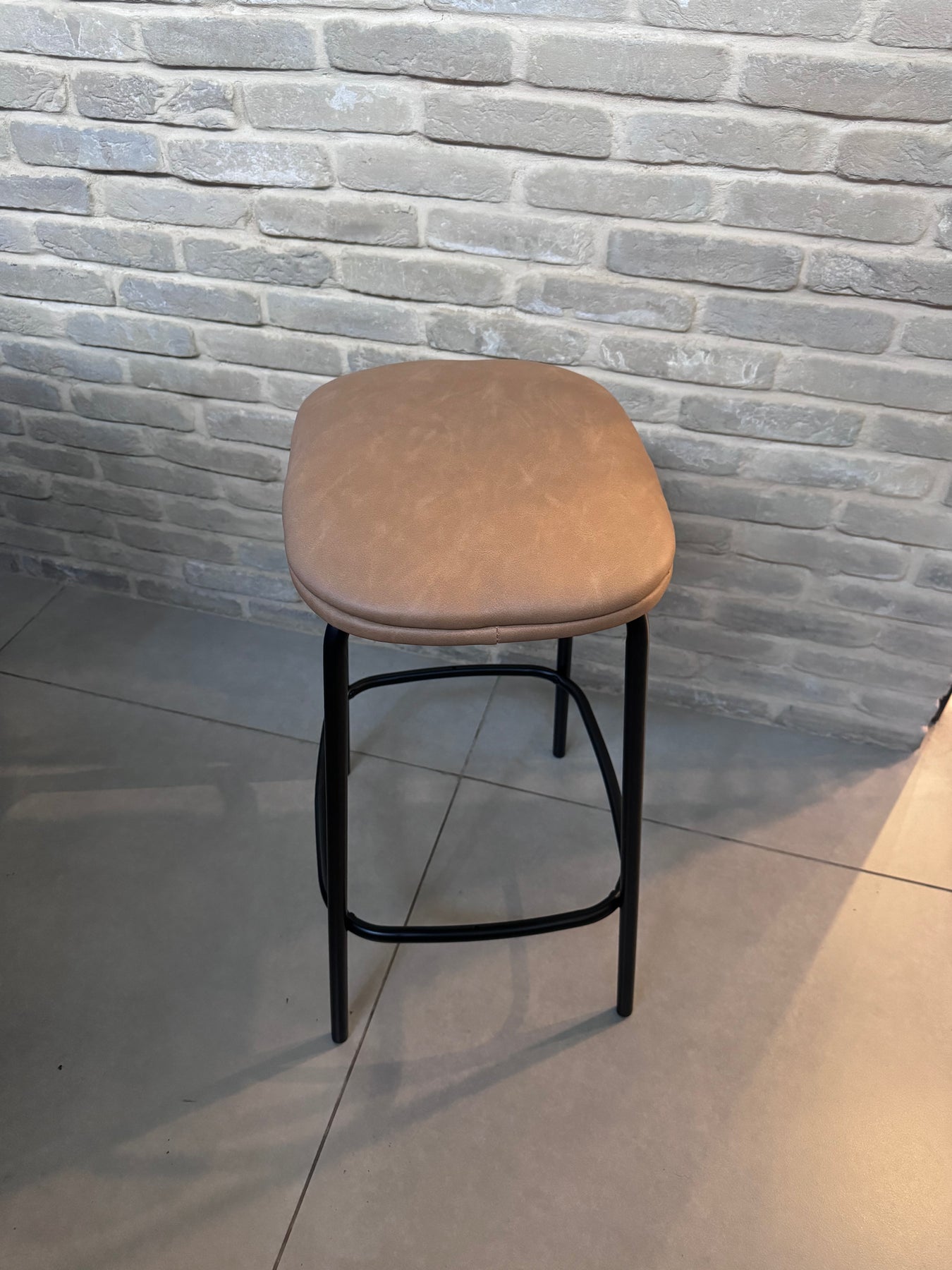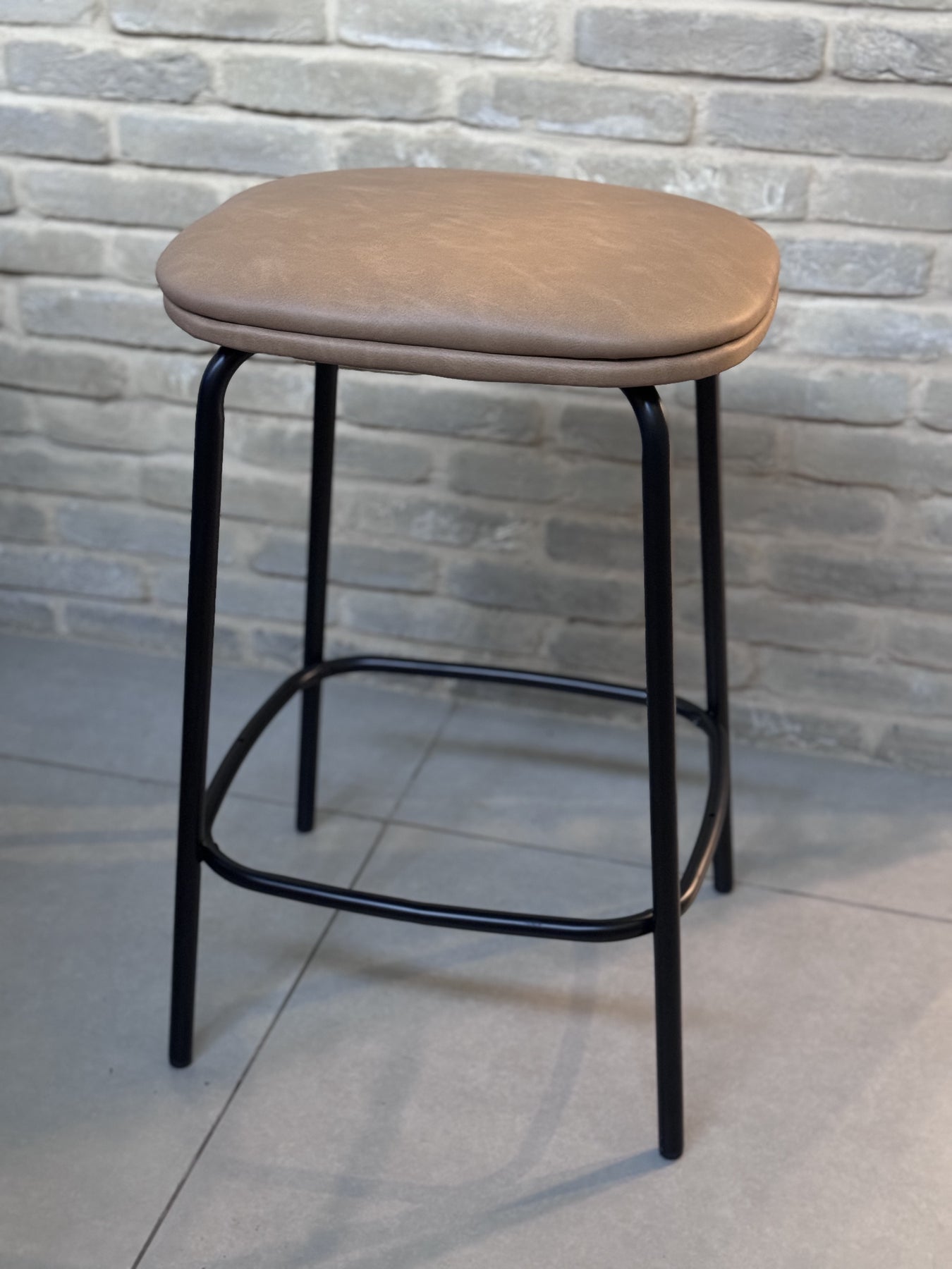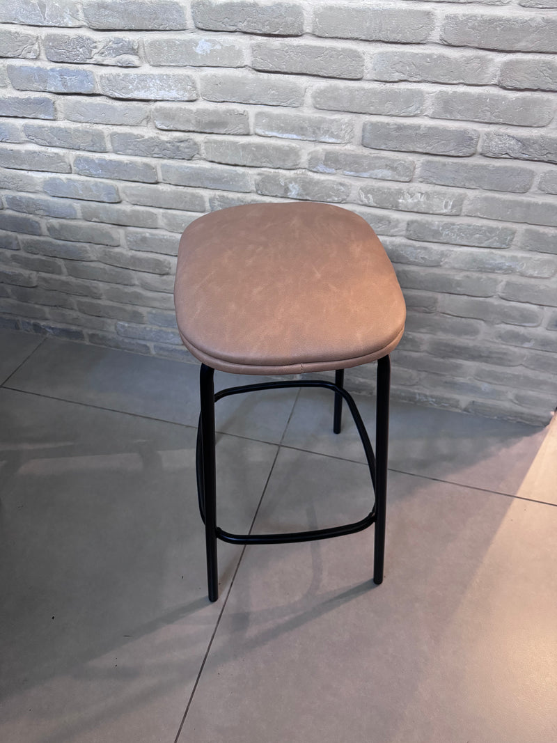 כסא בר מרופד בבד דמוי עור עם רגלי ברזל דקות ומעוצבות