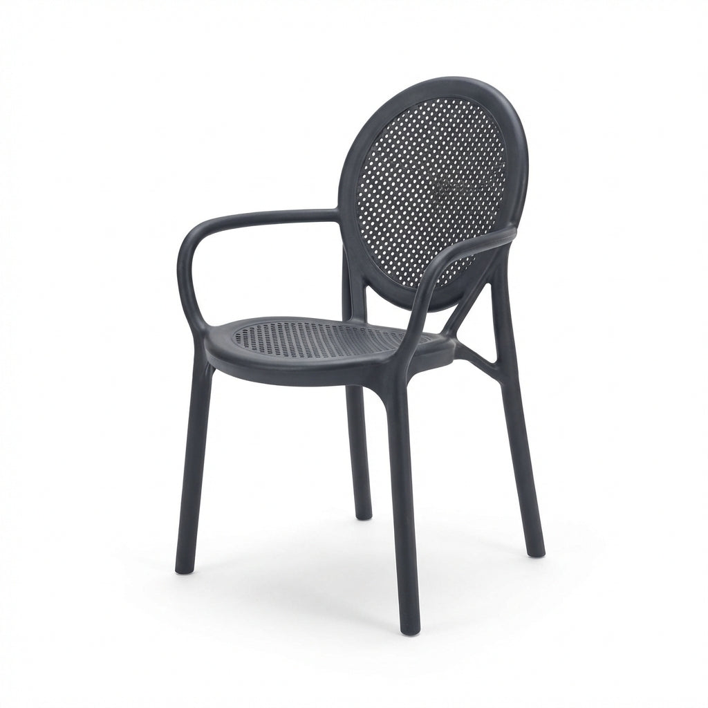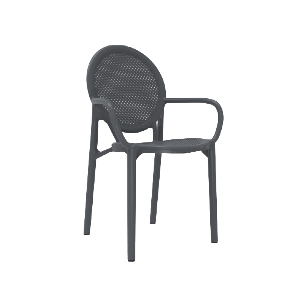 כיסא Rio הכולל ידיות מעוגלות הממשיכות את קו העיצוב של משענת הגב. נערם ופרקטי מאוד למסעדות ובתי קפה.