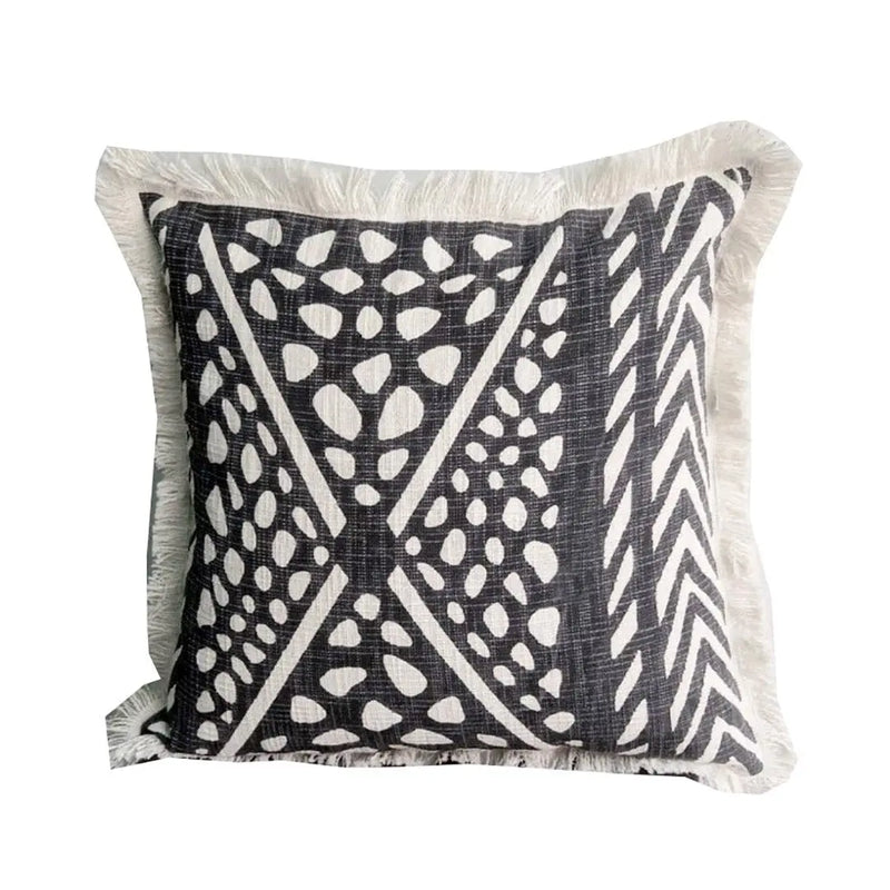 כרית בהדפס גאומטרי עם פרנזים לבנים Hootam