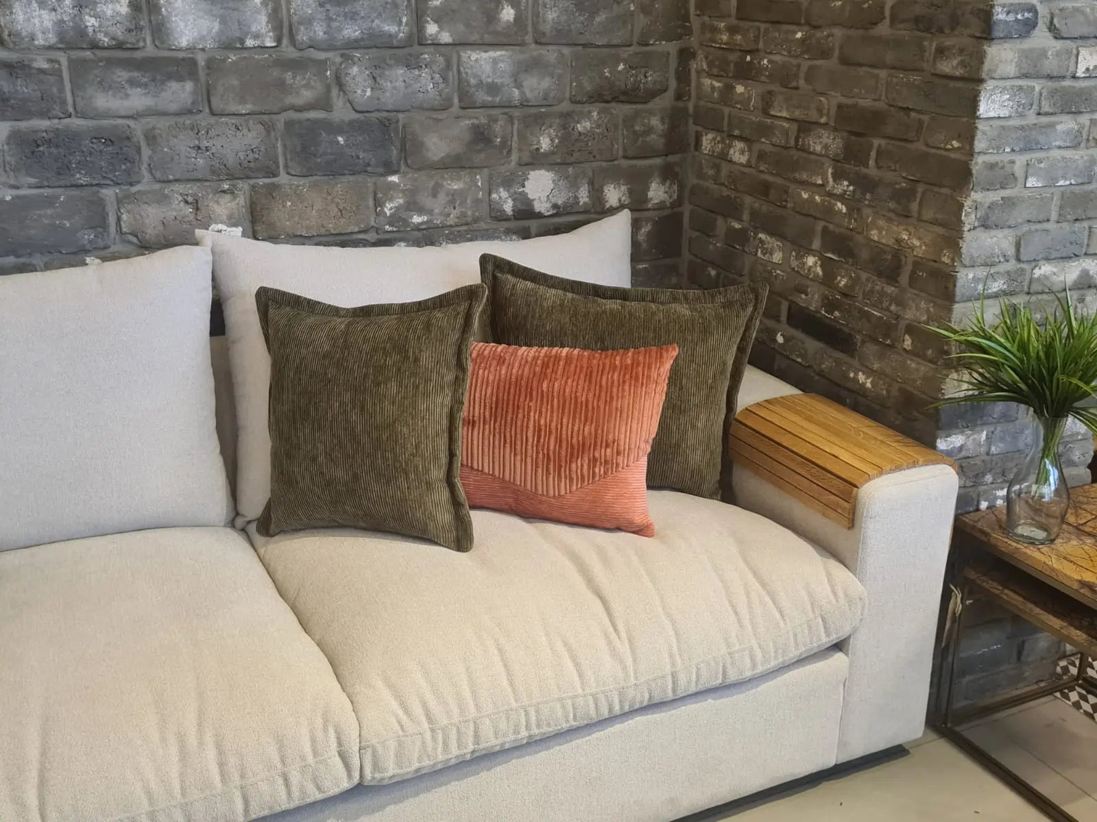 כרית מלבנית מעוצבת בבד קורדרוי פסים צבע ירוק זית